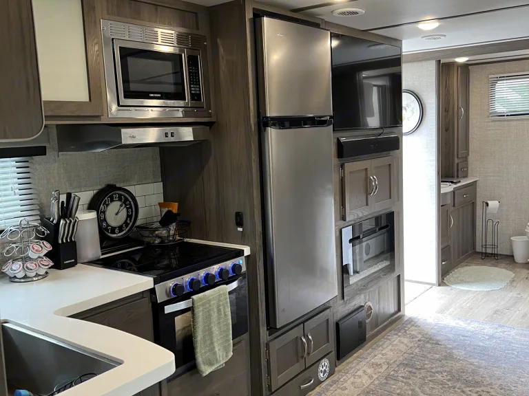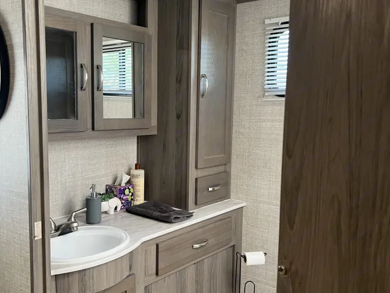 Beautiful camper with a lot of room ,large bathroom, big shower ,King size bed all the amenities very comfortable for short term or long-term.What's included