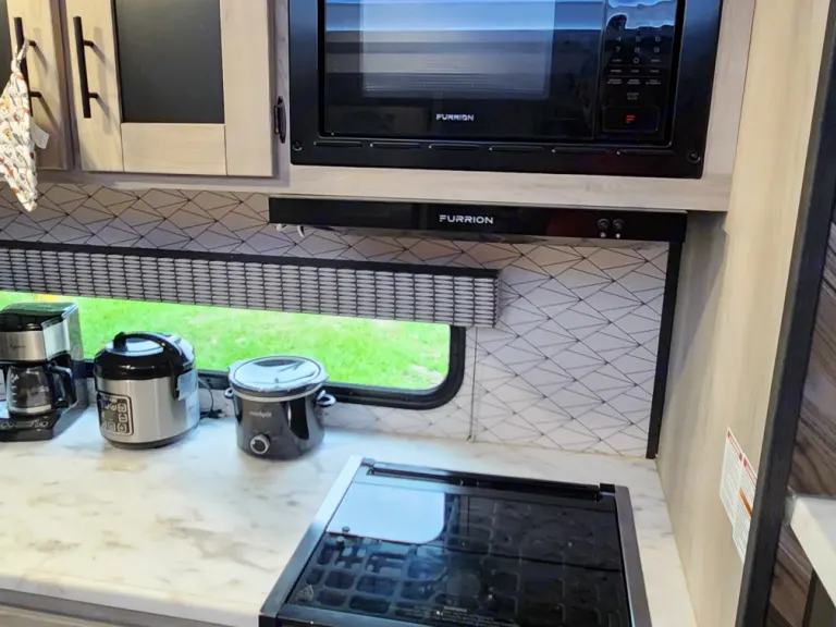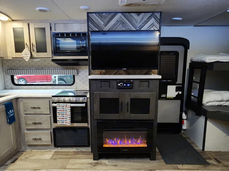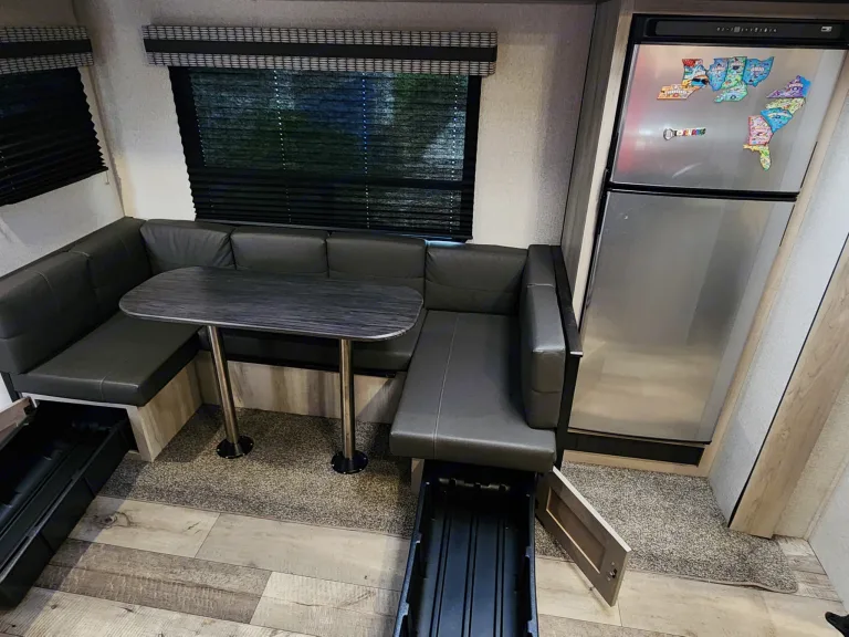 You will love spending your time in this Connect travel trailer it has a U-shaped dinette directly across from the LED TV and 30" fireplace, so you can watch a show while you eat dinner. The kitchen is outfitted with a stainless steel microwave, residential faucet with spring sprayer, three-burner range with oven, and 8-cubic foot refrigerator, and there is also a kitchen skylight to give you more light to see what you're doing. Another skylight exists in the bathroom above the 30" x 36" shower, and the king-size bed in the front bedroom will deliver a very comfortable night of sleep. The more time you spend outside, the more you'll appreciate the 18' power awning with LED lights, and the exterior also has an outdoor kitchen with mini refrigerator. The trailer has 2 ducted ceiling mounted ac units. They will freeze you out if you run them both even in the Florida sun we have never had trouble keeping it cool.What's includedHas Outdoor kitchen, chairs, patio mat, coffee maker, silverware, plates and basic cooking stuff.Other things to notePets Welcome.