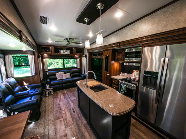What's includedOur throughly clean fifth wheel is ready to go with everything you need to enjoy your trip. Bottled water is included, just bring your food to use with the pots and pans we provide.