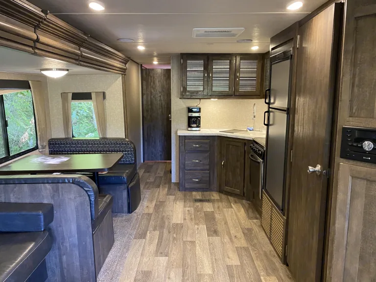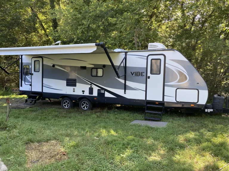 Enjoy some good Vibes in our roomy trailer. It has dual A/C, outside shower, dual recliners, a big picture window for an enjoyable view, spacious well stocked kitchen with coffee pot, toaster, plates, bowels, cups, coffee cups, utensils. We also supply paper goods and plastic cups because who wants to dishes all the time when your on vacation. large pantry cabinet. Queen size bed, shower enclosure. Just bring towels, food and cloths and have a great time!What's includedQueen size master is ready with clean linens and comfortable pillows. The outside cubby has a pair of basic camp chairs and small table and a grill. The kitchen should have anything you might need like pots, pans, dishes, utensils, can opener, salt and pepper, garlic powder, onion powder and veg. oil. we also have a phone charger just in case you forgot yours.RecommendationsElk River float trips. Crystal Bridges museum. Beaver Lake camping. NWA cycling. NWA craft fairs. Grand Lake camping. And so much more.