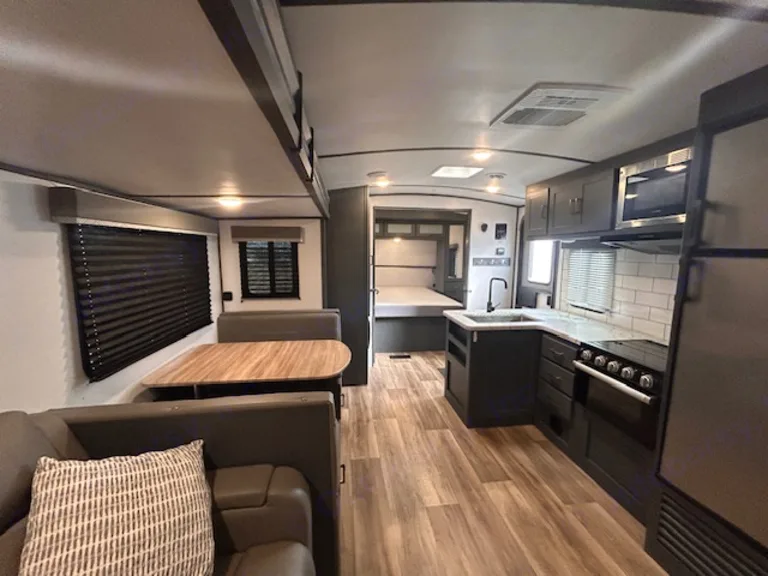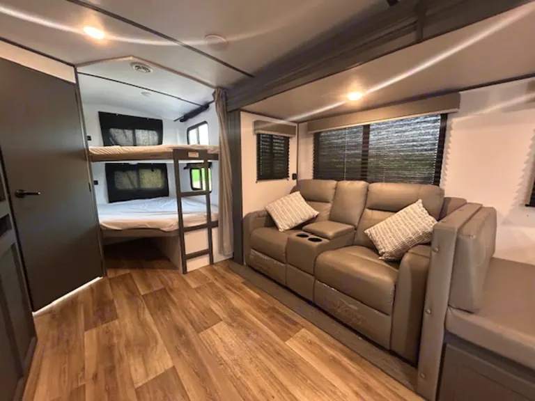 The 2022 Keystone Bullet 290BHS is the ideal family-friendly trailer for your next getaway. With sleeping space for up to 8, it features a private queen bedroom, oversized double bunks, and a large slide-out with a U-shaped dinette and jackknife sofa. The fully equipped kitchen includes a 3-burner stove, oven, microwave, and fridge, plus we stock it with all the essentials. Enjoy the convenience of a full bathroom with exterior access, an outdoor kitchen, power awning, and LED lighting. Easy to tow with a half-ton truck and available for delivery. Fully stocked and adventure-ready!