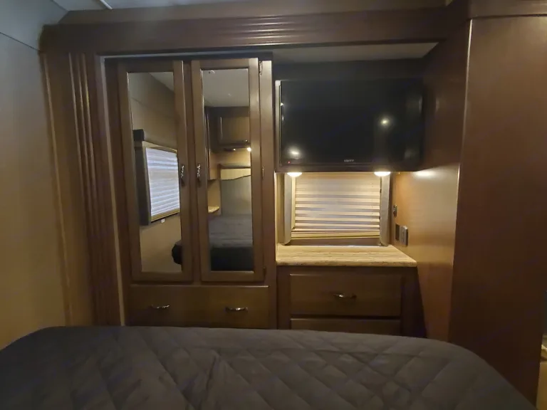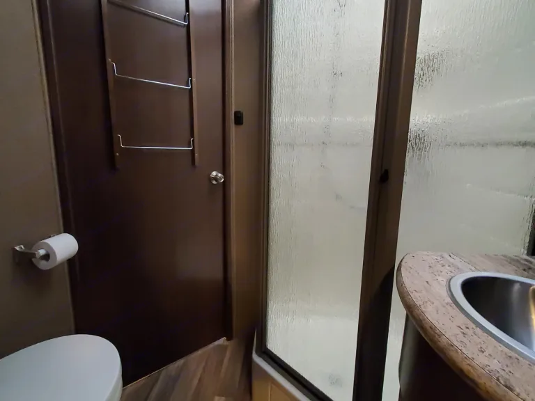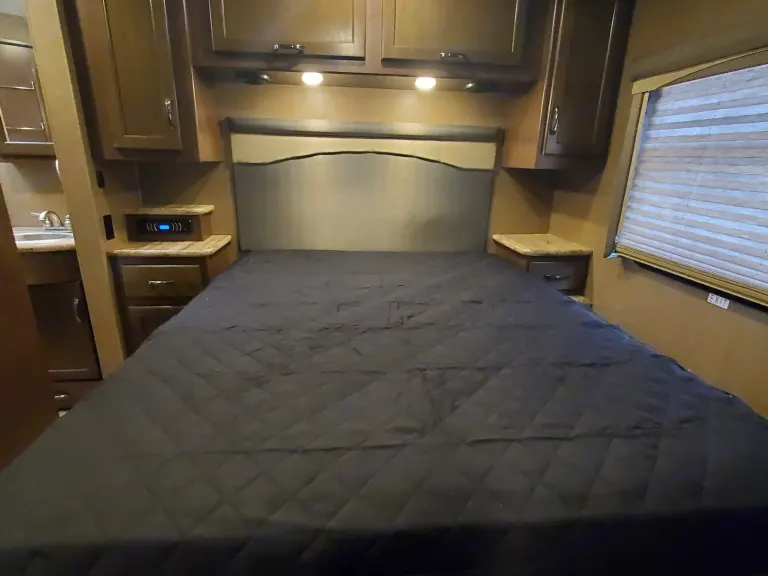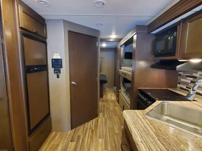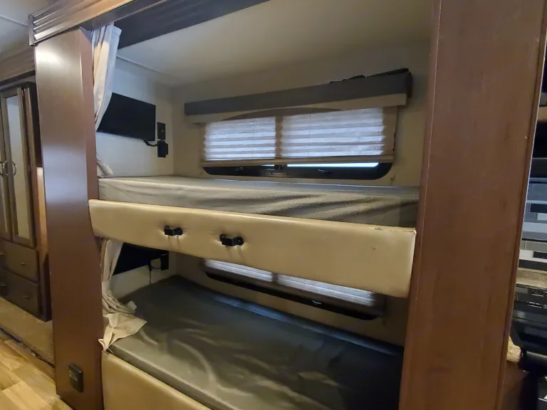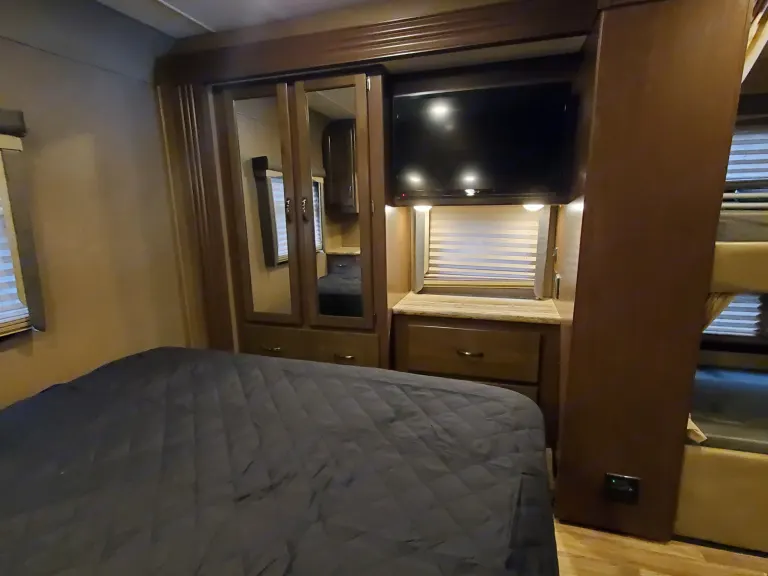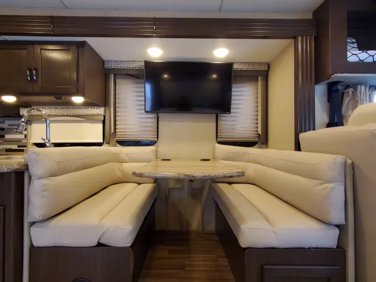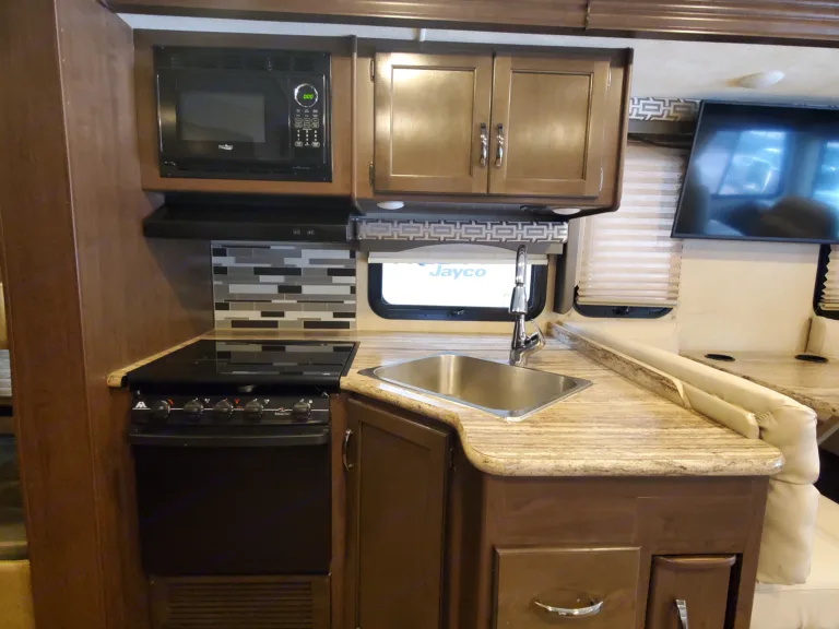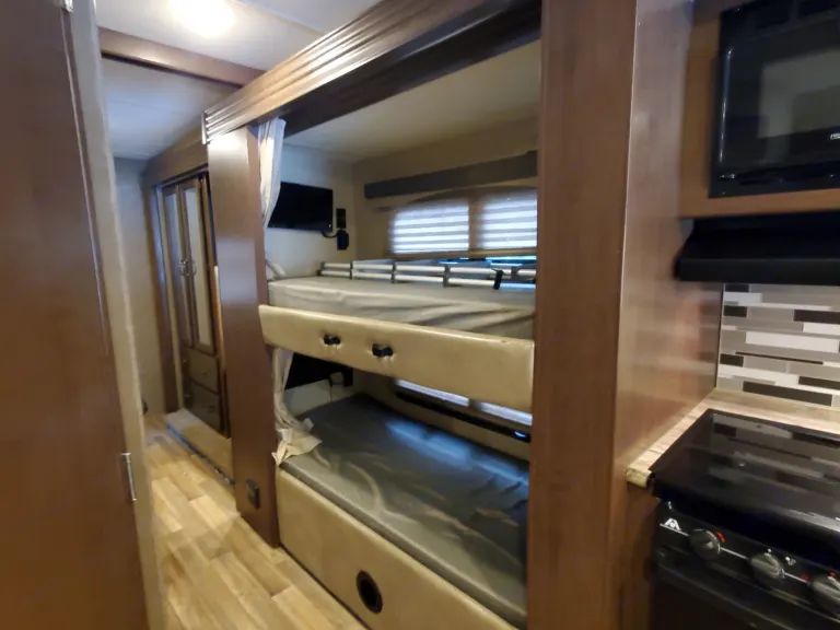 Air Conditioning / Heating: Climate-controlled for year-round comfort with 15,000 BTU roof A/C and 35,000 BTU furnaceKitchen: Fully equipped with double-door refrigerator, convection microwave, three-burner gas cooktop, stainless steel sink, pantry, and cookwareEntertainment: 32" TV with DVD player, sound system, interior/exterior speakersBathroom: Full bath with shower, toilet, vanity, and skylightOutdoor Features: Power awning with LED lighting, rear video backup camera, power retractable entry stepsStorage: Large pass-through storage bays for luggage, bikes, or outdoor gearExtras / Optional Services: Delivery and setup available within [your region], stocked for comfort, detailed walkthrough provided