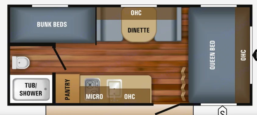 Jayflight camper is brand new and has an electric awning for your ease. It also features country white cabinets with grey trim.It has a queen size bed in front and bunkbeds in the back. The dinette seats two and transforms to another twin bed.Kitchen has a two burner stove, microwave, refrigerator/freezer, and sink. There is storage above queen bed, kitchen, and dinette, along with storage under the queen bed that is accessible from inside and out. Storage is also located under the dinette and twin bunks.Camper has a stereo that is bluetooth with speakers both inside and out for music enjoyment while relaxing by a campfire or inside while cooking, etc.What's included Kitchen includes: cooking utensils, grilling utensils, can opener, multi-utensil gadget, 2 dish towels, mixing/storage bowls, 2 small pots and a cast iron pan, plastic plates and cups along with coffee mugs, and a Keurig coffee pot. We also include a small grill (propane is an extra charge).Bedding includes: 1 set - Queen sheets, 1 - King quilt, 3 sets - twin sheets, 2 - twin comforters, 1 - twin quilt, and 2 - throw blankets.Bathroom includes: 2 beach towels and 4 bathroom towels and washcloths.There are extra lights to hang around the awning or campsite, should you choose and 2 lawn chairs. We also include a small vacuum and broom, as we know campsites love to be filled with dirt, along w/an outdoor carpet.Included are family games to enjoy: Rummikube, Uno, and playing cards.If renter is towing, the tow package on the vehicle must include: 2 inch ball and an electric break controller. If an electric break controller is not installed, we have one for a fee.Should you have any questions don't hesitate to ask.