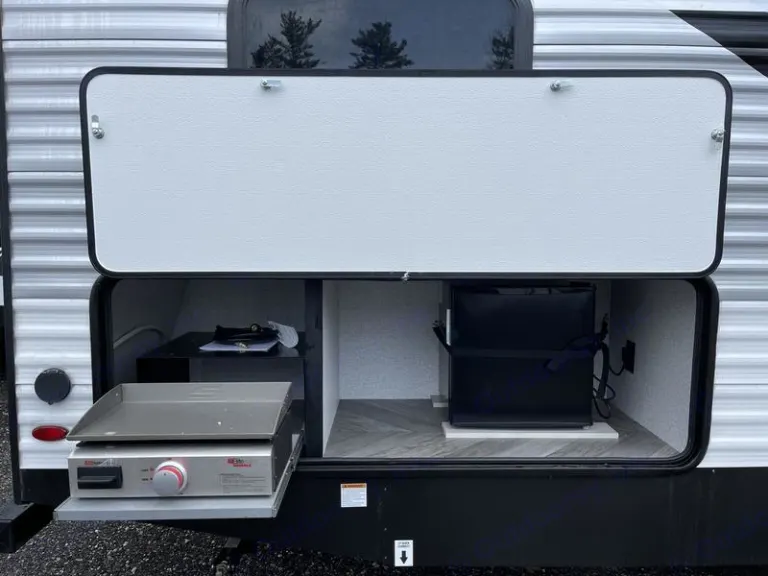 You will also find the outdoor camp kitchen complete with a mini fridge, griddle, and outdoor shower hook up.This trailer is brand new, and has the latest and greatest features available with our guests in mind. Some more highlighted features that haven't been mentioned:
