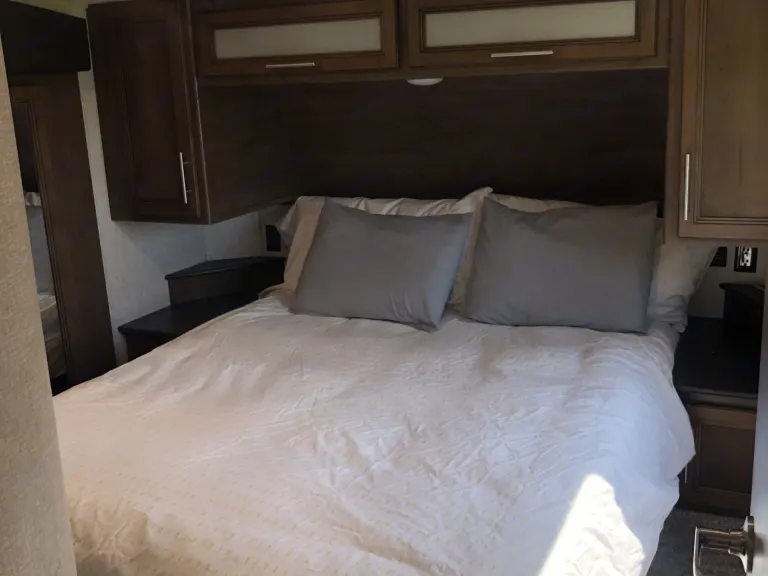 Hi, campers! We are a blended family starting a farmstead! Aubrey is a California transplant; Ryan was born and raised here. Yes, the winters are a lot for Aubrey! We have used this RV less than once a year so we figured we may as well let others enjoy it when we aren't. We only do delivery and the pick up and drop off time is flexible. If you have any special requests please let us know. The spare room has a bunk bed-style situation. There is one bed and a pull-out couch. The dining table turns into a bed and there is a queen bed in the master suite. There are two massage chairs right in front of the TV and fireplace. We provide cookware and linens for you as well. Please feel free to reach out with any questions or requests.