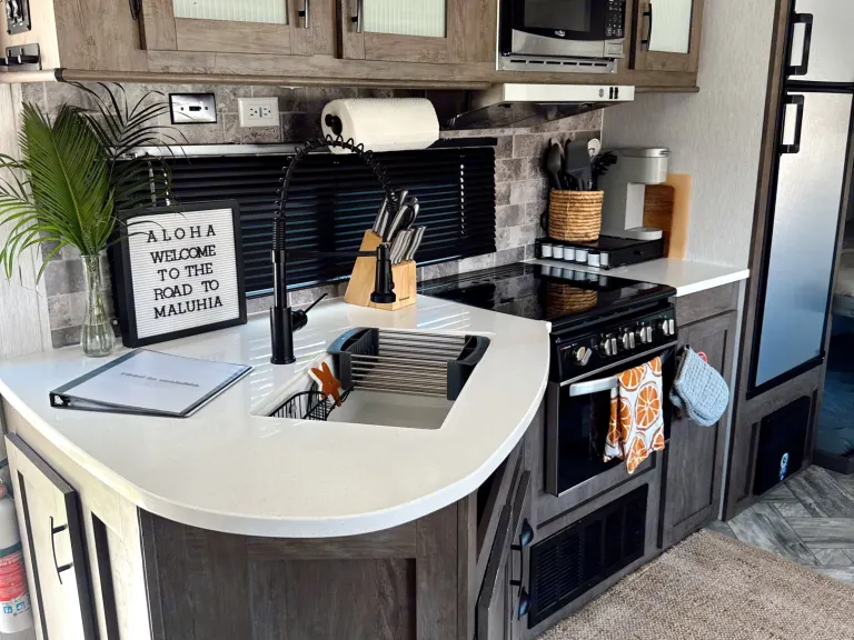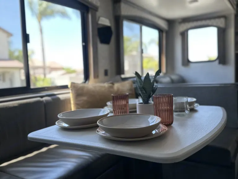 We really enjoyed our stay! The RV was beautifully maintained and decorated. It was comfortable and spacious for a family of 5. The kids loved sleeping in the bunk beds. We added on the outdoor grill and it was perfect for grilling up breakfast and dinners. I loved that they included an outdoor rug to keep the outdoor space comfortable and mess free. There is a mini keurig and we were able to enjoy a cup of coffee in the mornings. They had the rv all set up upon arrival for us. I highly recommend Leilani and her husband’s RV!