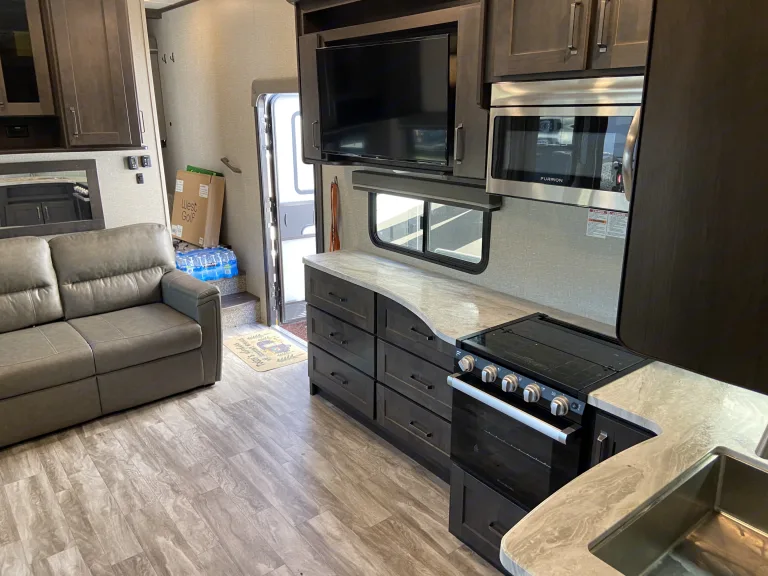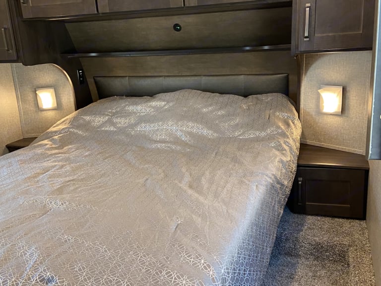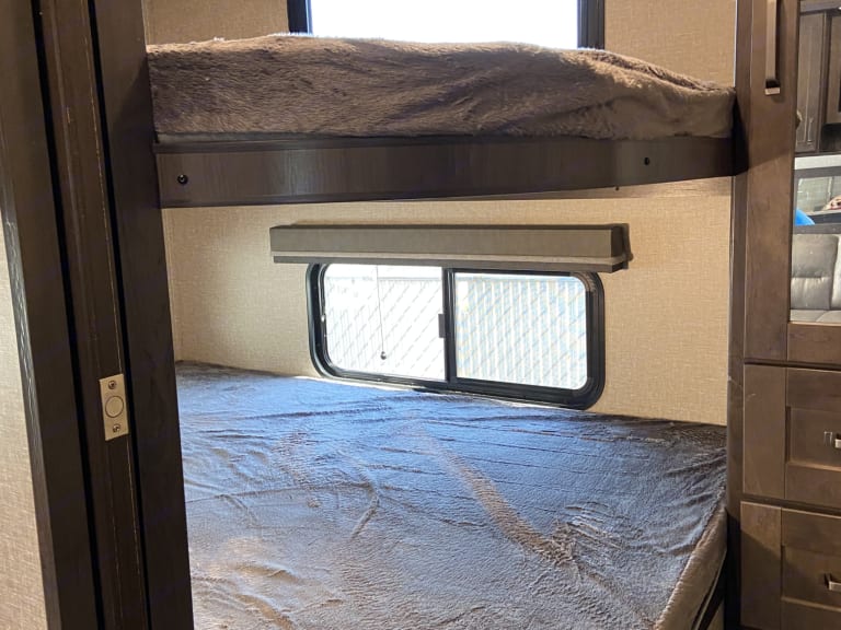 Looking for the perfect home-away-from-home for your next family adventure? Look no further than our 2022 Grand Design Reflection 150 278 Bunkhouse fifth wheel! This spacious and pet-friendly trailer is the ideal choice for families looking to hit the open road with their furry friends in tow.Step inside this luxurious fifth wheel and you'll be greeted by modern amenities and stylish decor. The bunkhouse area provides plenty of sleeping space for the kids, while the fully-equipped kitchen allows you to whip up delicious meals on the go. The cozy living area is perfect for relaxing after a long day of exploring, and the private bedroom offers a peaceful retreat for a good night's sleep.Outside, the awning provides shade for outdoor dining or relaxing, and the pet-friendly features ensure that your furry companions will be comfortable and happy during your travels. With plenty of storage space and all the comforts of home, this Grand Design Reflection fifth wheel is sure to make your next adventure one to remember.Delivery and setup is available upon request within a 100 mile radius and a additional charge.Toilet paper and one roll of paper towels are included along with basic kitchen utensils, grilling spatula and tongs, salt and pepper, plastic plates, one grilling platter, bowls, and cups. You are welcome to bring your own kitchen supplies. Otherwise, please ensure all items used are cleaned and placed back in their designated places upon returning the camper to avoid an additional cleaning fee.We are located in Terrebonne, Oregon and are at an optimal location for many scenic vacations. If you need suggestions planning your trip, please feel free to reach out!No smoking in or near the camper.Please clean all kitchen supplies.If you have chosen to use our bedding, please strip the beds and place all linens in provided hamper before returning.As always, please treat our camper as if it were your own.This hitch is a bit different than most goosenecks, as the ball is on the trailer. Please see photo for an idea of what your truck needs to be able to tow yourself. Other things to noteNo smoking or vaping