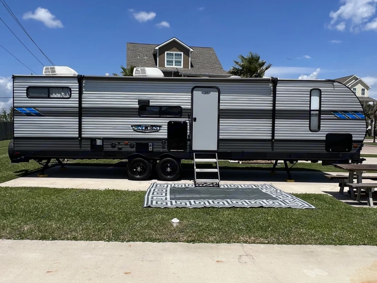 Winding River RV Rentals is offering this beautiful like new Salem by Forest River 29Vbud. This unit sleeps 10 and is fully stocked with the comforts of home. 3 smart TV's, bed linens, towels, fully stocked kitchen( dishes, cups, silverware, cooking utensils, pots, pans, Keurig, toaster, and blender. This RV is equipped with Bluetooth stereo that features indoor and outdoor speakers, outdoor kitchen with griddle and mini fridge. We have included family games, dominoes, a volleyball, football, and blitzball.What's includedLinens