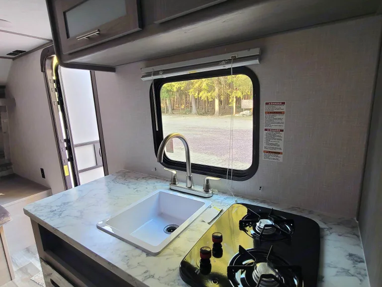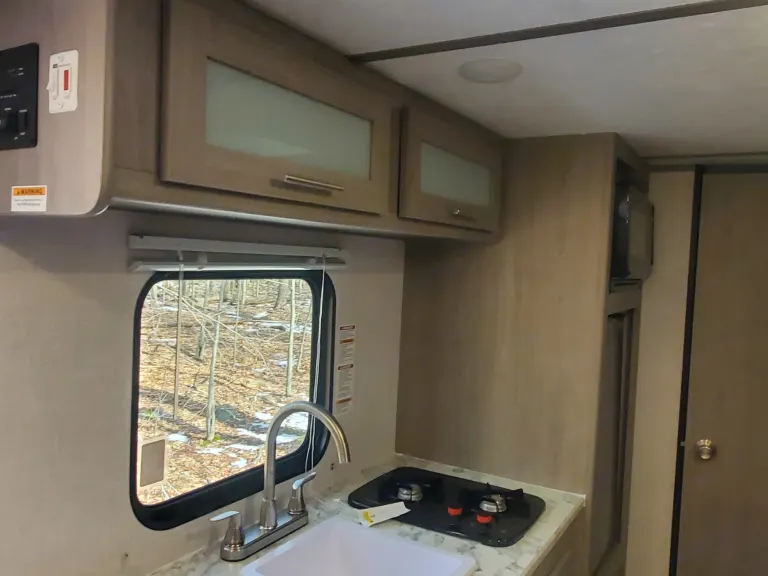 This camper is perfect for a small family or romantic getaway in the woods of the Poconos. Inside you'll find a queen bed, bunks for friends or little ones, and a convertible dinette for one more or a fur friend! An AC for the hot days and an electric fireplace for those cold nights. A mini fridge, stovetop gas burners, and microwave for your inside cooking needs. Extra storage can be found underneath the queen bed and underneath the lower bunk. We are located nearby to many amazing state parks and campgrounds in the Poconos. We are central to the many water parks and resorts of Nepa! We are also a short drive from the Pocono Raceway for race weekend! We are also conveniently located by Montage Mountain for all the festival fun! We deliver to Knoebles! Dry camping now available!What's includedToilet Paper (RV/Marine Grade T.P. only)