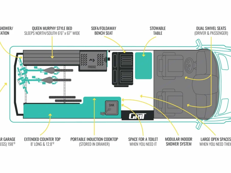 • 21-Gallon Fresh Water Tank + Heated Grey Water Tank