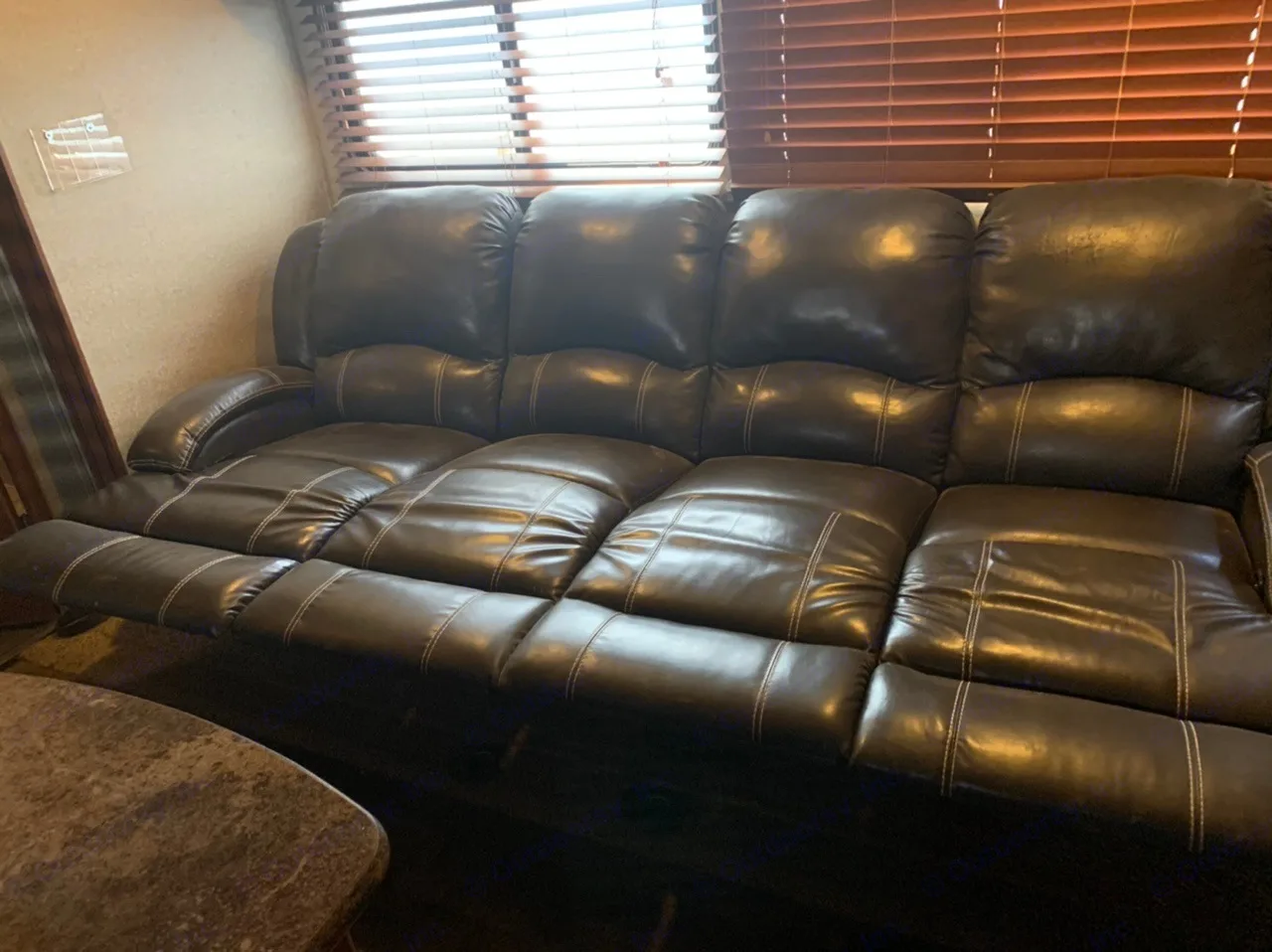 Great toy hauler separated garage 10’ long with dual benches that convert to beds,separate master bedroom, living area has large couch, nice kitchen. The bathroom has two entrances, one from the master bedroom, the other from main living area. The rear ramp door has patio option for extended seating capacity. Two doors one to master bedroom the other to garage area. TV and stereo, large 21' awning along with outside television mounting bracket for outside viewing. Other things to noteNo pets, if the gray water and black water tanks are not emptied there is a $100 additional cleaning charge. Love's Truck stop at 83rd avenue and I-10 has RV sanitation dump, its not free either $10 or $15 fee