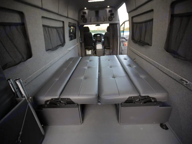 We spared no expense with this swiss army knife for compact and highly mobile content production and outdoor adventuring.Meet The AdventurahThis 4x4 Mercedes Sprinter diesel is ideal as a mobile base, and can be kitted out with a variety of different options to meet your usage needs. Roof platform - outdoor shower - 27" TV - 14 studio quality speakers - fridge- USB chargers - exterior working lights- awning - changing area - wifi - 8 power outlets- legal seating for 10-Bed for 2- Sleeping Area for 4- Stand up paddle racks. This Vehicle is the perfect California adventure Mobile.