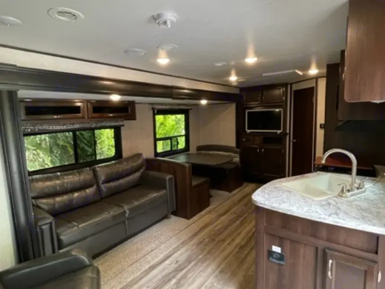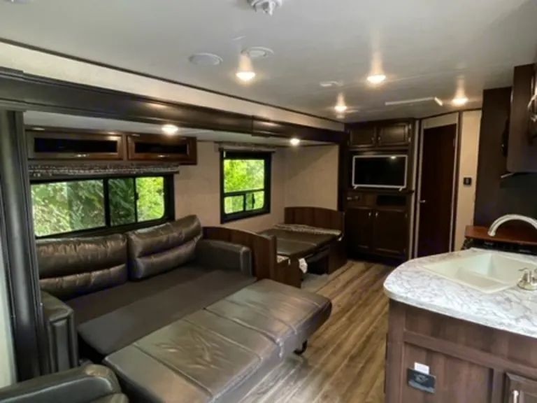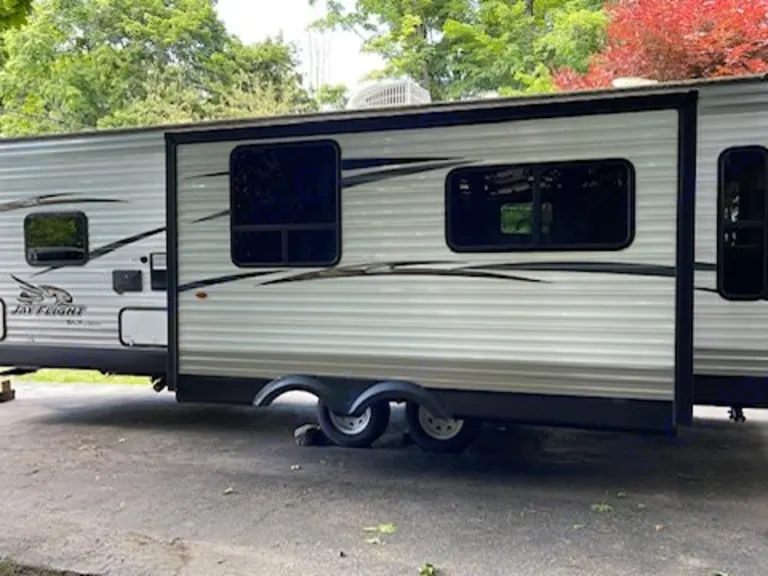 Welcome to our home away from home in the Eagle's Nest! Come and enjoy some unforgettable family adventures in our incredible 30"11" Jayco SLX 8 265RLS (Rear Living Slide out) gem!Inside you'll find a private bedroom with a cozy Queen size bed, perfect for a good night's sleep. The rear boasts two comfortable swivel chairs, as well as a sleeper sofa. The sleeper sofa transforms into a full-size bed. Also, the dinette can be set up as another full-size bed. This camper comfortably sleeps 5 or 6 very small adults... who like each other.Rainy days are no problem with plenty of space to hang out inside, play a board game at the dinette, watch some TV or grab a snack. The refrigerator keeps your food and snacks cool, while there are roomy compartments for both frozen goodies and refreshing beverages. The kitchen has a gas stove and an oven. You can store your kitchen supplies in the spacious pantry. The bathroom is a great space for getting ready or to enjoy a refreshing shower.Our camper is your ticket to endless adventures. Book it for a trip to the mountains, the beach, family gatherings, or if you need a place to stay while your home is being renovated,Don't miss out on the fun! Rent now for an amazing Summer or secure your spot for a fantastic Fall season! Let the adventure begin! We cannot wait to share our Eagle's Nest with you!** Please review our Add Ons!** We have a Supplemental Rental Agreement (SRA) that will need to be reviewed / signed** A walkthru will be completed upon delivery, as well as a walkthru will be completed at pickup.***We Offer Delivery Only Per Insurance Company, No Exceptions*** What's includedDelivery base rate: $250 , up to 40 miles