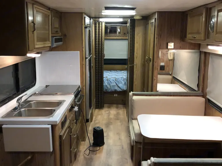 34 feet 1987 National RV remodeled with Life proof flooring, . Original oak cabinets, New Queen size bed, propane powered stovetop ,oven, and hot water heater . Also equipped with microwave, 12v Refrigerator, that stays very cold powered by the sun. 1200 W of solar panels, magnum inverter and 200 ampere hours of lithium ion batteries that are charged by the sun or while driving, Great for camping without hook ups. Also has fantastic fans, 2 brand new roof AC units( March 24), and powerful 6.5 kva Generator. To keep you cool when it’s hot .