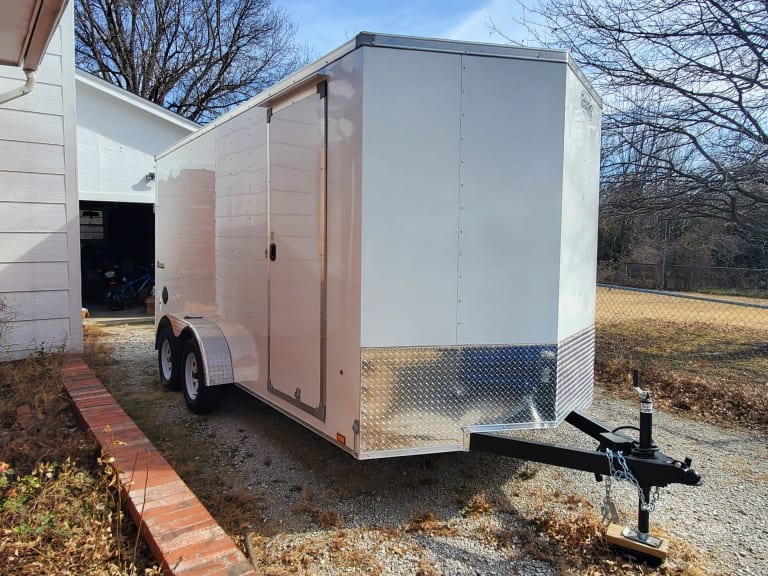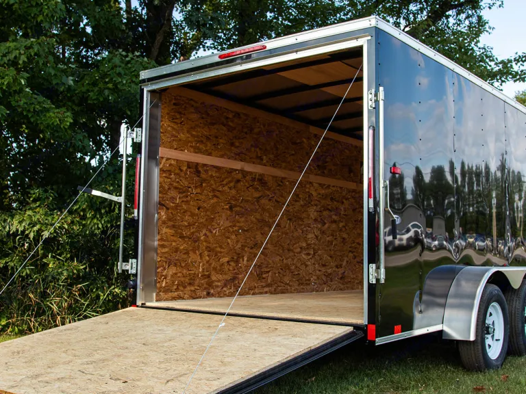 Brand new trailer. Side door and the rear door folds down to be a ramp making loading/unloading easy.Not sure what I can say about this trailer to get 500 characters, sheesh. This is brand new, used only one trip. She's a beauty isn't she? Makes me want to leave my wife. Can you imagine the longing looks that you will receive while driving around with this little beauty behind you? Oh my, I think the paparazzi will be following you like Justin Bieber (or whoever the latest no talent heart throb is). Ok I got 500! Yayy!