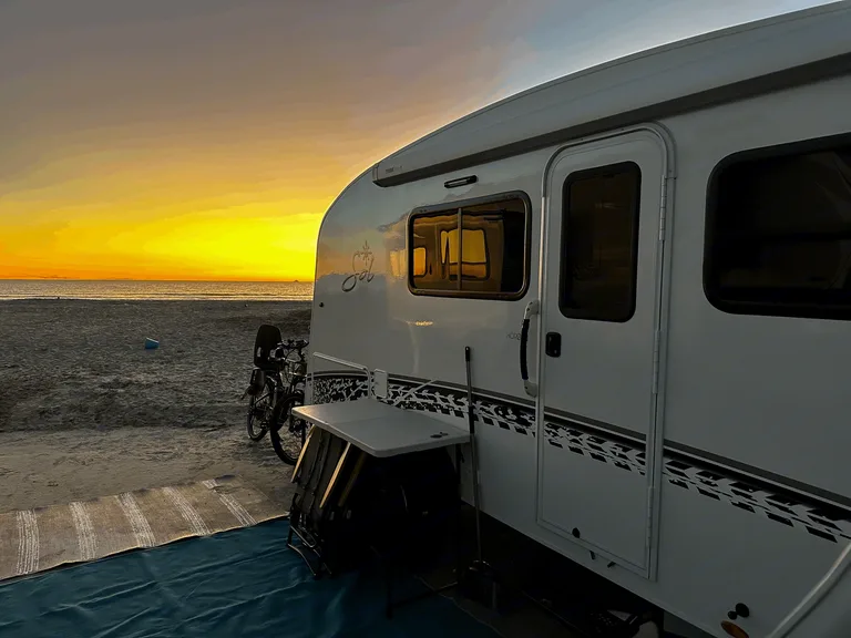 Hi there! "Buddy" (named by our kids!) is the perfect RV for your next camping adventure! This RV comes fully loaded with everything you need to enjoy life on the road: cookware, camping chairs, outdoor griddle, coffee maker, camping mat, and more. It's very easy to use all the features inside and out of this unit, making it perfect for first-time RVers!We are a family of five that loves to camp! Buddy the trailer is the perfect mix, with a refrigerator, wet bath, and comfortable beds while keeping the pleasures of being outdoors. With six windows, Buddy is exceptionally bright, and you feel like you are still part of the outdoors!Buddy is unlike any other camper, featuring a massive 3-ply laminated glass panoramic front windshield, providing the best view of the great outdoors! inTech is exceptional at making smaller spaces feel large. The Sol Horizon Rover provides ample space to move around, with features such as a spacious dinette for up to five adults, a large 10' awning, and a one-of-a-kind exterior kitchen. The luxurious kitchen has a farmhouse sink, a commercial-grade faucet, and a two-burner LP stove with a cast-iron grate.The Slide-out Exterior Kitchen is a highlight, making it easy to cook outdoors with an LP griddle, perfect for breakfast, lunch, and dinner! Buddy is the only camper in its class that offers this unique feature, along with an extra refrigerator.We'll ensure Buddy is nice and clean for you; kindly return it in the same condition."The best way to predict the future is to create it." - Abraham LincolnWhat's includedCookware, camping chairs, outdoor griddle, coffee maker, camping mat, etc.RecommendationsNewport Dunes Waterfront Resort and Marina is a stunning RV destination in Orange County, California. Located on the beautiful Back Bay of Newport Beach, it offers breathtaking waterfront views, spacious RV sites with full hookups, and a plethora of amenities for a memorable stay. The resort is perfect for water activities, with kayak and paddleboard rentals available, a full-service marina, and a waterpark. There are also plenty of activities for fitness enthusiasts, kids, and those who prefer relaxation. Newport Dunes is conveniently located near Orange County's top attractions, making it an ideal base for exploring the area.Other things to noteNo Smoking!