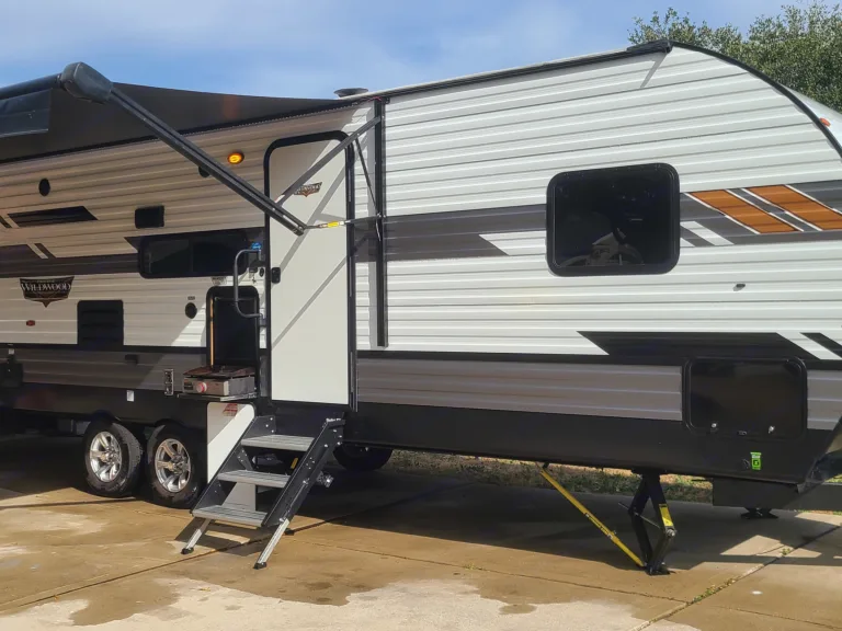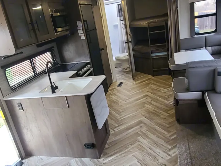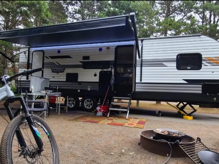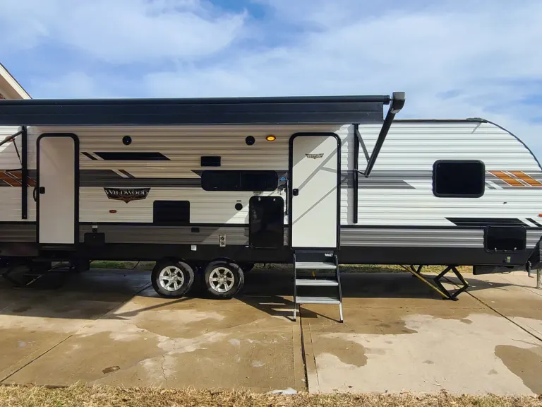 Are you ready to make some memories!? Looking to get away for the weekend or family trip? You will love this trailer!One of the more popular floor plans offered by Forest River. Enjoy the trip with plenty of space to spread out! Queen bed up front, double bunks in the rear, and fold out couch and dinette. Good size Fridge inside, food pantry, microwave, stove and oven! Don't forget the small fridge and griddle outside! Electric fireplace to create a good ambiance at night while watching a movie on the 43" smart TV! Enjoy the outdoors as well with a large Awning, outdoor LED lights and speakers to enjoy a fire with the family! Also, if you get dirty, there is a outdoor shower as well!Every rental will come with bedding for the Queen and the bunk beds. Kitchen is stocked with basic cooking utensils, basic pots and pans. Lastly a K-Cup coffee maker for you favorite coffee in the morning.Rental will come with a propane fire pit, corn hole game, and 5 camping chairs. Both propane bottles on trailer will be filled before pick-up but renter is responsible for any refills during the rental.General cleaning supplies are provided, broom, Swiffer, Lysol wipes and extra trash bags. We ask that you treat the trailer with respect and clean up after. If trailer is picked up with excess trash, soiled in dirt or dust, or any major mess a $150 cleaning fee will be applied.No smoking/vaping inside the trailer, and no pets. There will be a $250.00 charge if violated.For Camp grounds without sewer hook ups, there will be a $40 dump fee for the Gray/Black tank.I can deliver within a 75-mile radius, but I do have a full time job which is flexible. A 2 week or more notice is perfect! Any short term notices I can typically only do Friday thru Sunday. But feel free to shoot me a message!Lastly, we will not rent for a festival or concert.What's includedEvery rental will come with bedding for the Queen and additional blankets. Kitchen is stocked with basic cooking utensils, basic pots and pans. Lastly a K-Cup coffee maker for you favorite coffee in the morning.Rental will come with a propane fire pit, corn hole game, and 5 camping chairs. Both propane bottles on trailer will be filled before pick-up but renter is responsible for any refills during the rental. RecommendationsThis trailer has been in the mountains and in well-established resorts. There is an optional generator that can be rented. Trailer can sustain 4 people for 3-4 days with full freshwater tank. Other things to noteAgain, no pets, and no smoking inside the trailer. Fee's will be added if those conditions are violated.For Camp grounds without sewer hook ups, there will be a $40 dump fee for the Gray/Black tank.