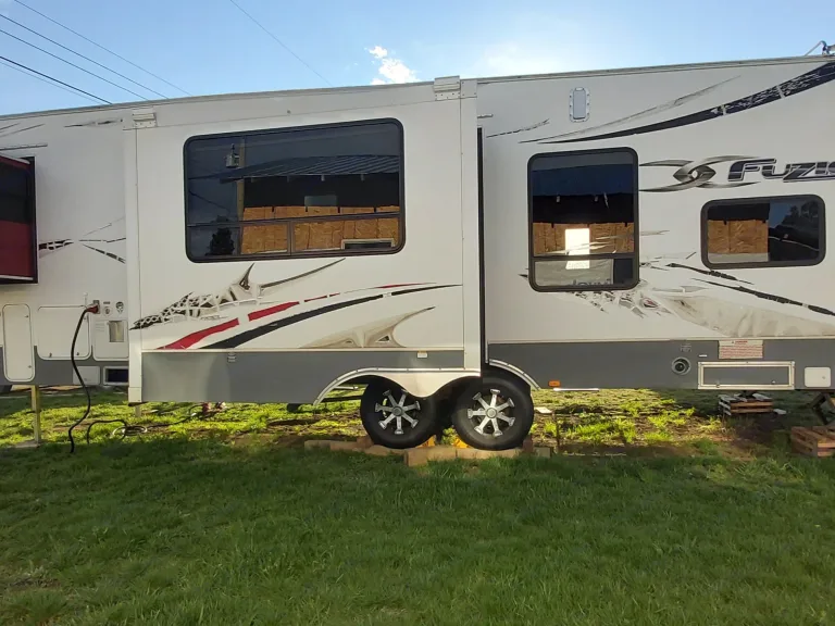 35' toy hauler with 2 slides that sleeps 6. 3 queen size beds, 2 drop down beds in the garage and 1 master. Bedding included and beds will be made depending on the number of beds you need or bring your own, just let me know.Large bathroom with walk in shower. Towels, face clothes,laundry bag and RV toilet paper included.