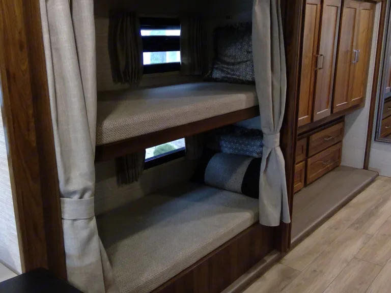 360 HP diesel motor. Air ride suspension. Bunk beds with drop down bunk up front.