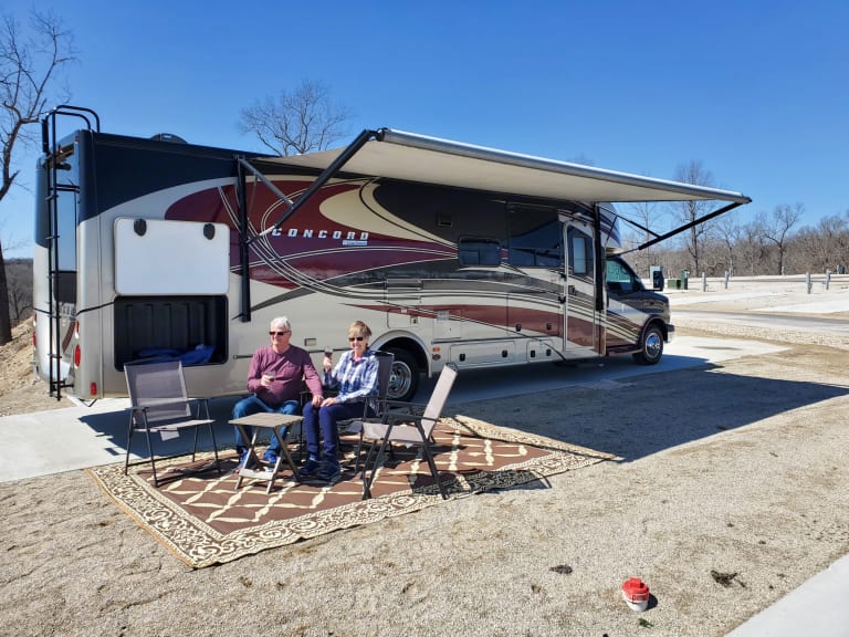 Hi I'm Jill. I welcome you to experience camping in Luxury and Style! Meet Concord! Concord is a 2014 Luxury Class C by Forest River. Concord is excited to take your vacation to the next level. The Coachmen Concord is recognized as a step above the rest in the RV industry. From the ease of driving, plush interior and smooth ride, you will feel like you are staying in a 5-star Hotel. Concord is well suited to accommodate 2 people for that romantic getaway complete with mood lighting indoors and outdoors. Enjoy the indoor electric fireplace for extra heat or for ambiance. Concord also has room to accommodate that small family of 4-6 if need be.We are located right at the north end of Lake of the Ozarks. Very easy to get to from St. Louis or Kansas City area on your way to the lake. We provide free, secure parking, or you can make arrangements for us to deliver Concord to your selected camp site.