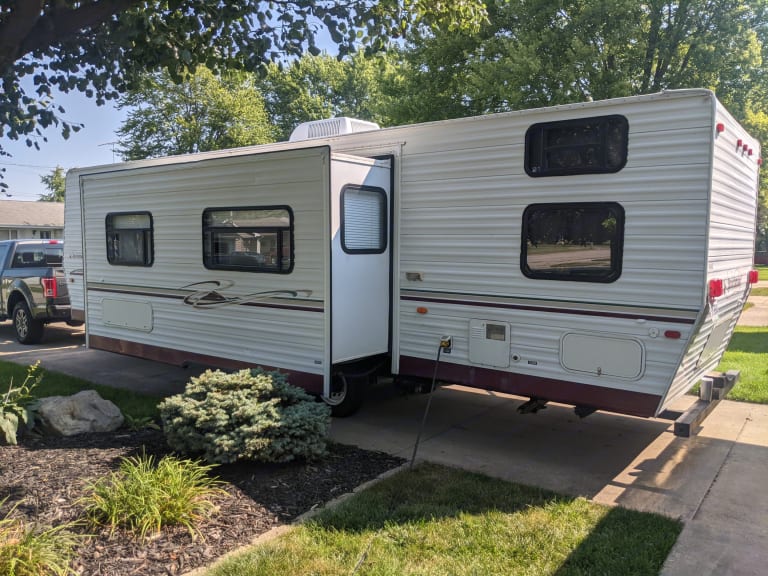 Thanks and happy camping!What's includedCamping table, chairs, cookware, utensils, kid friendly DVD’s, fire gate, linens/towels upon requestRecommendationsGreat for Eldora, family gatherings, Lake Loramie, and St. Mary’s.
