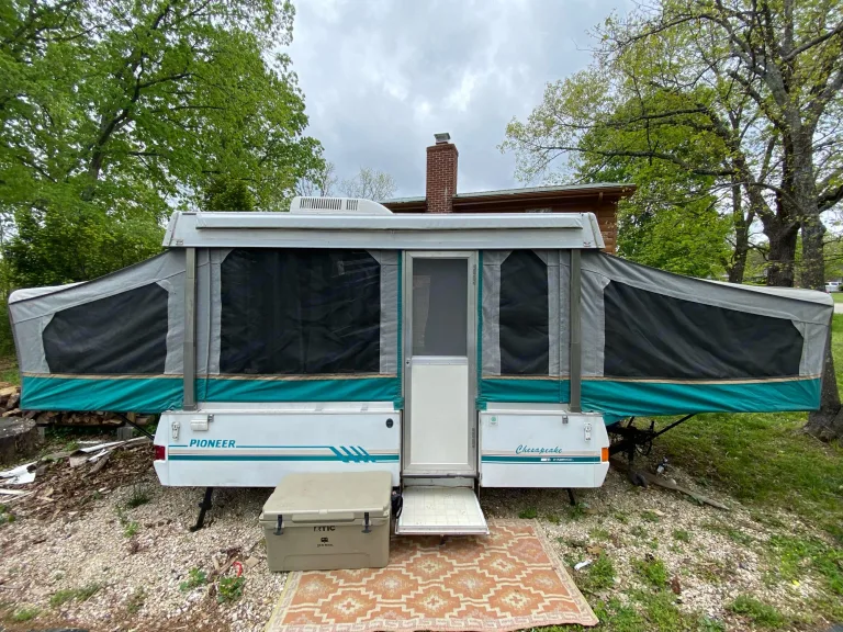 Are you ready to upgrade your stay from tent camping and enjoy some air conditioning and soft beds, and don’t want to spend a fortune renting a large camper that you won’t even be in very often? Well then we have just the thing for you. Our pop-up camper sleeps five comfortably with a queen bed on one side and a full bed on the other and the dinette converts into a bed comfortably sleeping five. This camper comes fully stocked with linens and pillows, towels, kitchen utensils, and free firewood with every rental. Each renter will also receive a gift basket with some goodies for your trip. We do require delivery and set up and will do so with in 90 miles of our location. We do this not because we don’t trust your experience but because we believe your vacation time is valuable and you don’t want to waste a single second of it driving to pick up a camper, learning how to set it up, then driving to your destinations, and trying to set it up on your own. Instead we take care of all the work you show up and just start camping!What's includedFully stocked with all the camping essentials