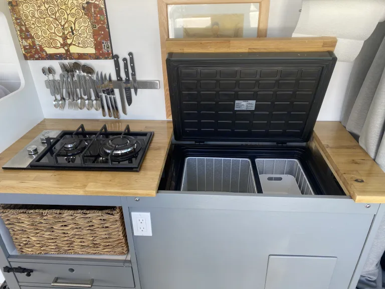 4 season camperMagnetic insulated black out blinds for all windows (including the cab) allow for stealth camping in townSwivelling front seats to turn the space into a living room200 watts of solar on the roof and 180 ah of battery reserve to charge your devicesFridge/freezer is built into the countertop for quick access to ice cream on hot daysTwo burner built-in gas stove, with pots, pans, dishes, plates, and cutlery.Tons of storage for food and clothesWater pump system for the sink. The faucet has a five foot hose that allows for outdoor showers, or washing off your gear.20 gallon water tankUndermounted propane heater works well in this heavily insulated van. On ski trips with the weather dipping down to -25C, it’s still cozy and comfy inside.Dual max air fans allows great airflow on hot summer days.The bed is 76” by 48.” I’m 6 foot and sleep really well in this spaceCavernous storage areas under the bed mean that you keep your gear safe and secure. It’s also a spot that dogs love.There is a 6 foot umbrella for the beach that doubles as awning if needed. There’s a a mauling axe, a hatchet and shovelThere is portable cassette toilet located inside the ottoman.Sports rental shop in my parking lot has bikes, surf, and ski equipmentAdditional charges and rules :Pick up time is 4pm and drop off time is 11am. This is to allow for time to get the vehicle ready for the next trip. Let me know if you need something different and we should usually be able to work it out.No dirt/gravel/off road travel. This is not a high clearance vehicle and does not have four wheel drive. GPS monitoring. If you travel dirt roads there is a charge of $10 per kilometreFuel: regular unleaded gas. Return it full to avoid the service and fuel charge Propane: depends on usageMileage: 150 km per day, $0.50 for each additional kilometreSeptic Fee $100, if cleaning required. The portable toilet cassette can be emptied into a regular toilet at a public washroom. Make sure to leave it clean for the next person.Most pets are welcome. Please let me know your situation when booking and there is a charge of $150. And please, no pets on the bed
