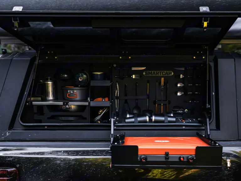 • Smart Cap Kitchen Bin (Dual stove burner, utensils, coffee maker, plates kitchen supplies and everything else you need for meal preparation.