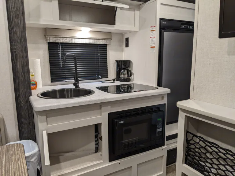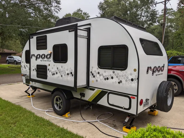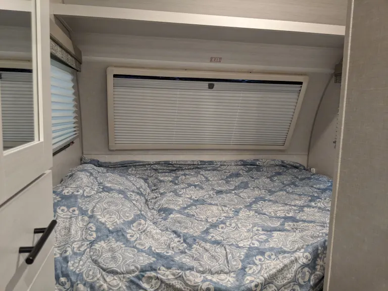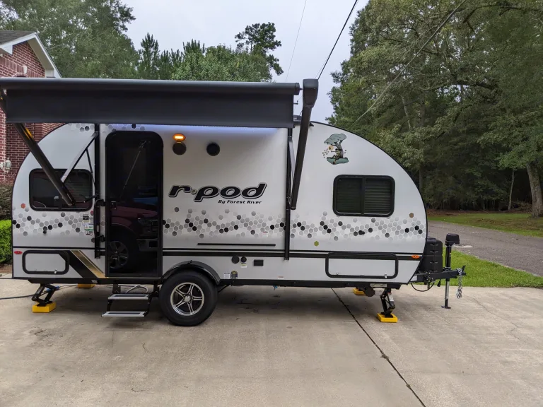 Small lightweight trailer that most vehicles can tow. Plenty of windows for a beautiful view of your camping area. Full size dry bath with plenty of room in the shower.Power tongue jack with weight distribution hitch and Bluetooth brake controller available if needed. Tow vehicle will require a 7 pin connection.A huge U-shaped dinette fills multiple camping needs as it provides the flexibility of additional seating or sleeping. Sleeping for 1-4 and a bathroom layout with separate shower & toilet design allows multiple people to enjoy the great outdoors. Removable outside kitchen allows for outdoor cooking and clean up with the sink and door side spray port.What's includedTP, cleaning supplies, some tools, and some cooking supplies and linens for the queen bed.Other things to noteNo smoking in the Camper!!!Pet friendly, but please clean up after your pets.There will be a $50.00 charge if the grey and black tanks are not dumped before return. There will be a $75.00 charge if the inside is not cleaned before returning and a $50.00 charge if the exterior is not clean when returned.