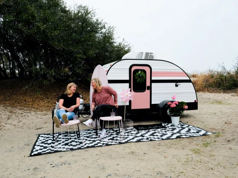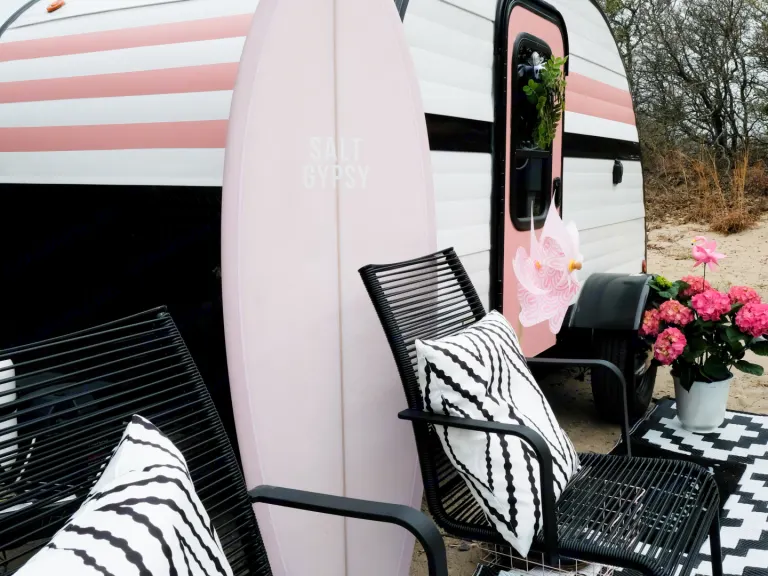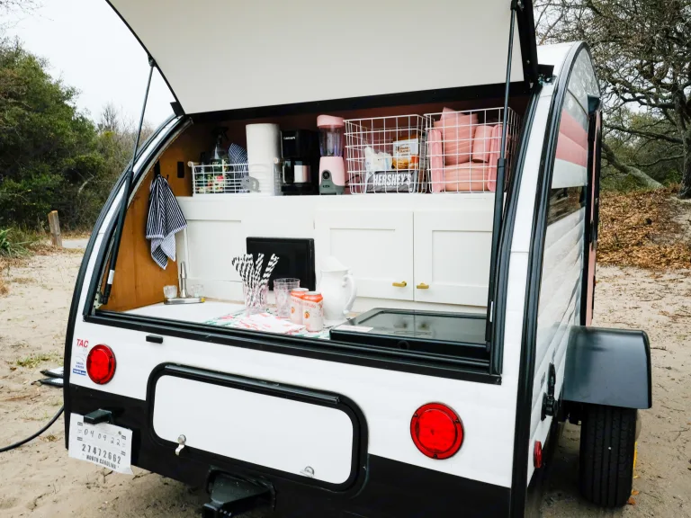 You will love reconnecting in this renovated, updated 2021 Riverside Retro Trailer— we call her June! She comes stocked in the main cabin with a full bed that folds into a comfortable couch, baskets for storage, air-conditioning, and all bedding with two sleeping pillows. In the back hatch, you will find a gas stove with a lighter, a sink, pots and pans, dishes, a blender and a coffee pot (June doesn’t go anywhere without it!) You will also find knives and cooking utensils, as well as kitchen supplies like paper towels, trash bags, dish soap and dish towels. Outside you will enjoy two comfy chairs and two small tables. There is also a camping mat as well as a basket for shoes and gear. The trailer has water and electrical hookup. If you plan to camp off grid, please let us know. We have a water tank for sink water only, which is your responsibility to fill once you get to your destination (we do not recommend drinking water from the tank.)   We have a battery, however we can not guarantee and have not used it ourselves.We picked June because anyone can tow her! You can book a campsite in Virginia Beach or the surrounding areas and we will have her set up and ready to go! You can also take her on a trip of your own! OBX, the Eastern Shore, a wine tour in the mountains, or even a tailgate— she’s ready to go anywhere! Couples Trip, Mother-Daughter Trip, Sisters or Girls Weekend--even a Surf Trip or a quiet weekend by the sea or in the mountains.Two can sleep inside comfortably on our upgraded mattress. You can also attach a tent or two outside and have extra sleeping room for guests.If you want to camp around Virginia Beach, check out First Landing State Park, KOA Holiday, Holiday Trav-L- Park, North Landing, or False Cape. June also loves the Eastern Shore— Cape Charles KOA, Kiptopeke, and Sun Outdoors Chesapeake Bay. What's includedJune has a double bed, which folds into a couch, contained inside a teardrop trailer. The mattress is an upgraded foam, perfect for two. Inside you will have storage and baskets, electricity, AC, clean bedding and two pillows (sheets also provided.) In the kitchenette, you will have a stove and a sink, as well as dishes, pots and pans for cooking, a coffee pot, a small blender and plenty of storage. For the outside space, you will have two chairs, as well as a camping mat. Most campsites have picnic tables and fire pits. Some people bring a tent and set that up as well, which would be an option for more sleeping accommodations on your camp site. June can plug into campsite electricity and has lines for water, or you can use a small generator. She does have a battery, but we have never used it (you’re welcome to try, but we can’t help or guarantee.). She also can plug into regular power with our converter. She has a water tank for sink water (please provide your own water to fill tank when you get to destination and ONLY drink your own freshwater) and gas to run the stove.If you are planning to visit Virginia Beach or the surrounding area, we can have her set up and waiting on you at your campsite (you must rent the campsite on your own.) If you need her for extra space for guests, we can bring her and set her up on your property.  If you plan to rent her and take her on a trip, we will meet you, give you an overview, make sure you get connected, and off you go! Mother-daughter weekend, a surf trip, girls trip, couple anniversary, scenic wine tour, the Blue Ridge Parkway, a tailgate or festival, or a weekend close to the shore--June loves any adventure she can find. Her lightweight, easy to tow size makes her the perfect trip companion.**Please note, guests are responsible for campground reservations.**RecommendationsVirginia Beach is filled with campgrounds, many right on the water. While at the beach, visit the oceanfront or the beautiful Chesapeake Bay! Enjoy the Virginia Aquarium and Ocean Breeze Water Park, as well as go-carts and many other family activities.  The Eastern Shore is beautiful— filled with camp grounds on the bay and beautiful scenery!  Feel free to take June on any adventure you can image— she’s easy to take on your big (or little) adventure!