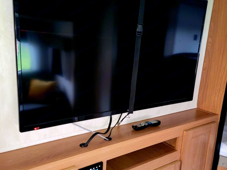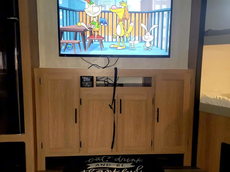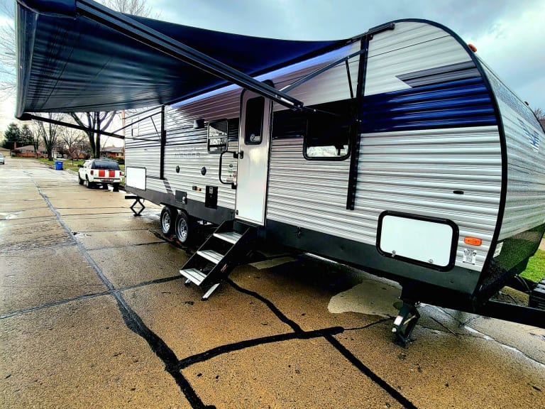 What's includedEntertainment options include a 55" TV and Bluetooth radio that can be enjoyed both indoors and outdoors. The camper is equipped with a full-size awning that features LED lights and an outdoor shower for rinsing off after a day at the lake or on the trails. For optimal comfort, it has air conditioning and heating, and its propane tanks are full.