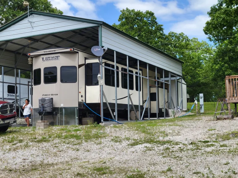 We have a firepit and outdoor area for entertainment. We are working on installing an outdoor movie theater. The lot is covered so rain and sun will not stop the fun.