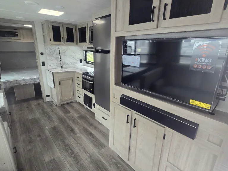 - Outdoor Living: Make the most of your outdoor space with a power awning with LED lights, an outdoor kitchen with a mini-fridge and stove, and two marine-grade exterior speakers.