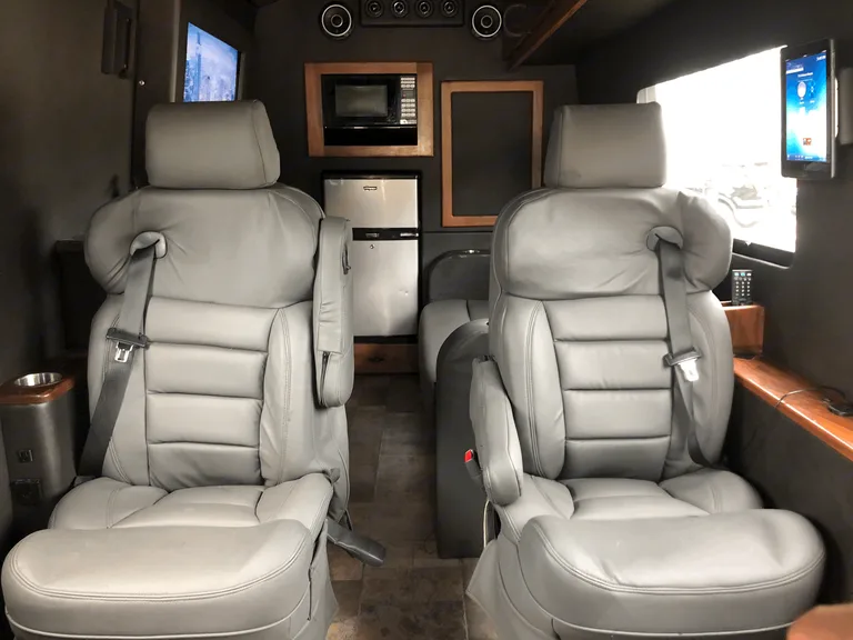 Welcome to my ultimate travel van. This van is easy to drive and loaded up. Five Captains Chairs (two in the front and 4 in the middle) and a two person fold out couch that can seat two large adults very comfortably. Three TV's, and Internet with Apple TV for streaming. Internet work great when on the interstate and the city, but once you get into the mountains you will want to mirror your iPad to the Apple TV and watch a movie. Bring your Netflix, YouTube, and Hulu sign-in and stream as you go down the road. Fridge, microwave, and rear storage. Rides great. Gets and average of 13+mpg at 70mph. Adults only, this is a very expensive van so mature and responsible renters only. Note, this is a high profile vehicle and can be affected by high winds and ice, witch can cause delays when traveling. Does great in snow, but is not 4x4. RecommendationsLong trips and weekend getaways. Other things to noteNo towing. To run the TV's you need to leave the van run or bring a 2000 watt generator to keep the van batteries charged. A generator can be provided for an additional fee. We don't use the sink of water system in the winter.