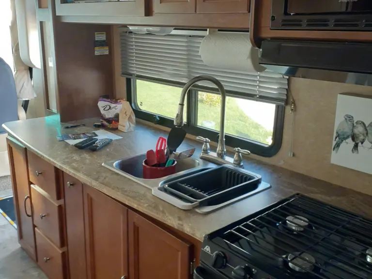 Great-looking, easy to handle, with outstanding features & storage. The drop down bunk over the cab, auto levelers/awning, 3TVs/Dvds, on-board generator and propane powers the fridge/hot water/furnace, etc. Plenty of room with the slide-outs and easy to read controls! Sleeps 5 with full kitchen & separate shower. Privacy doors allow full use of the rig. Newly remodeled with newer seating throughout.What's includedFresh linens, kitchen utensils, plates, condiments, etc. Most prefer to bring their own sheets, towels, bathroom supplies. Some camp chairs provided, outdoor carpetRecommendationsWe have taken rig coast to coast, through mountains, all types of landscapes. We recommend you stay at RV parks. In order to use the generator the main vehicle fuel tank must be at least 1/4 full. Many fail safe features on the rig, I. e. Must keep running with emergency brake on for auto leveling to function. Slide-outs will work with key out of ignition with either RV Park electric or generator running. Must retract awnings if over 15 MPH winds Or if leaving rig unattended. Secure all hatches, cabinets, electric/sewer/water supply & conduct a walk-around inspection prior to driving away.Other things to noteReturn rig as you received it to pass visual inspection upon return referencing pre-trip pics for confirmation. Thank you & enjoy!