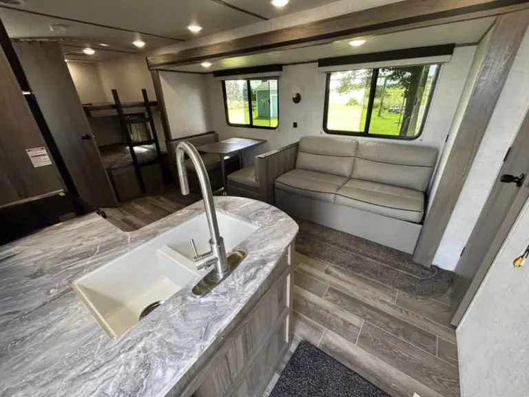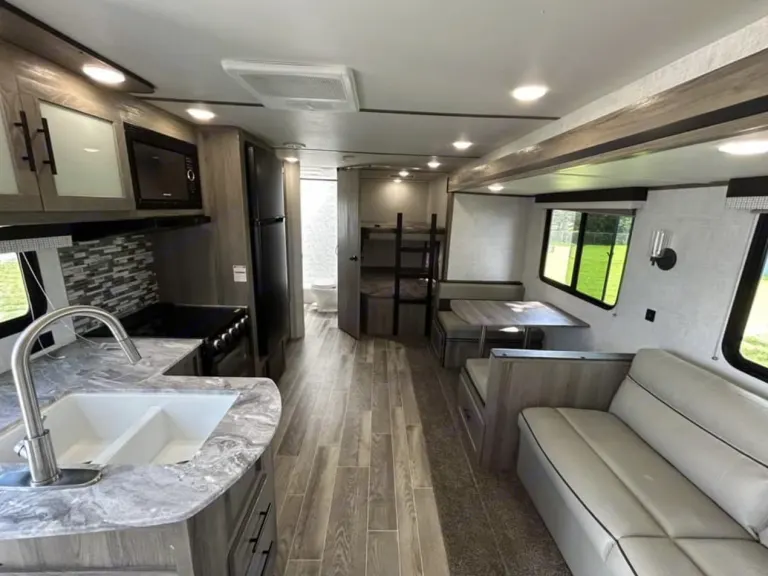 (Feel free to inquire about other delivery locations in West Branch)Our camper is very clean and comfortable. It has a private bedroom separated by a wall with 2 closet spaces. There are 2 double bunks which can fit 2 kids each. The couch and the dining table turn into beds as well. There is one slide out, allowing for plenty of room inside the camper. Plenty of storage in the camper and a nice size bathroom with shower only. Please only use *RV Safe toilet paper-* (some provided). Feel free to let us know if you have any special requests or questions that we can try to accommodate!What's included• Fully stocked :)