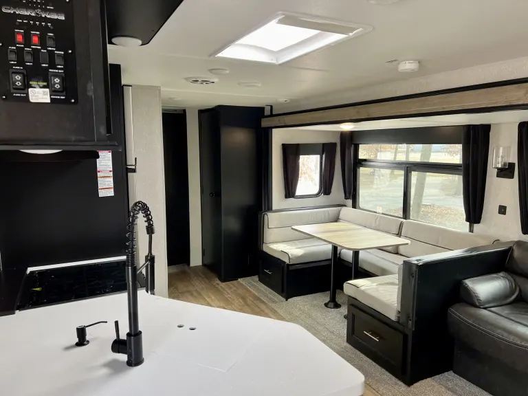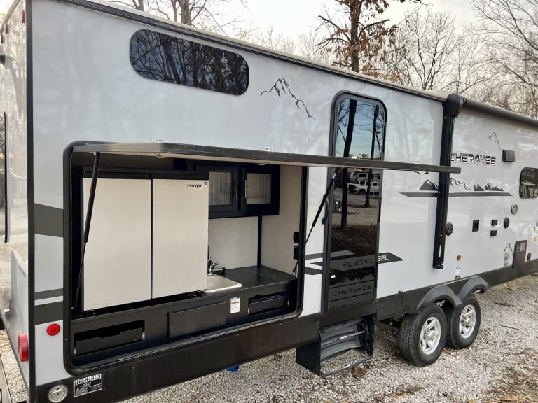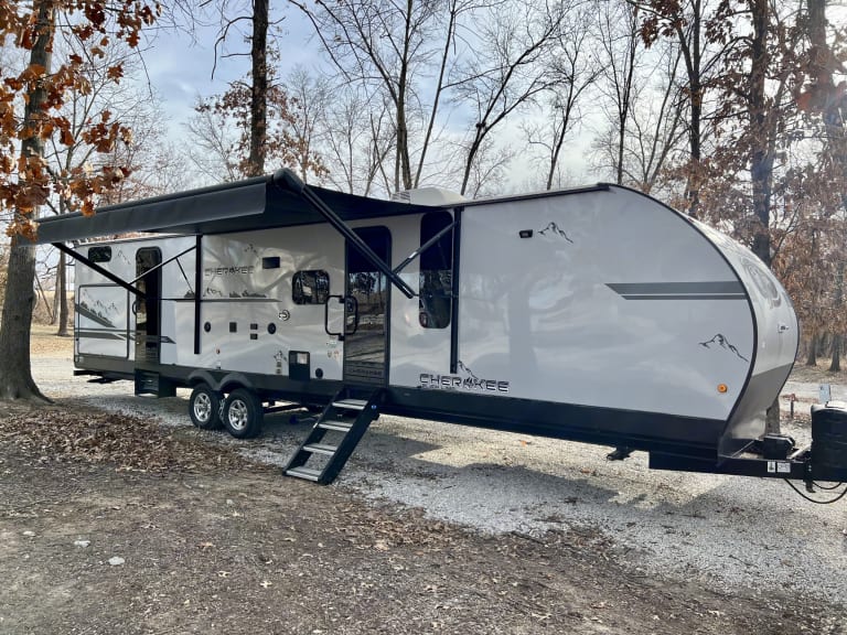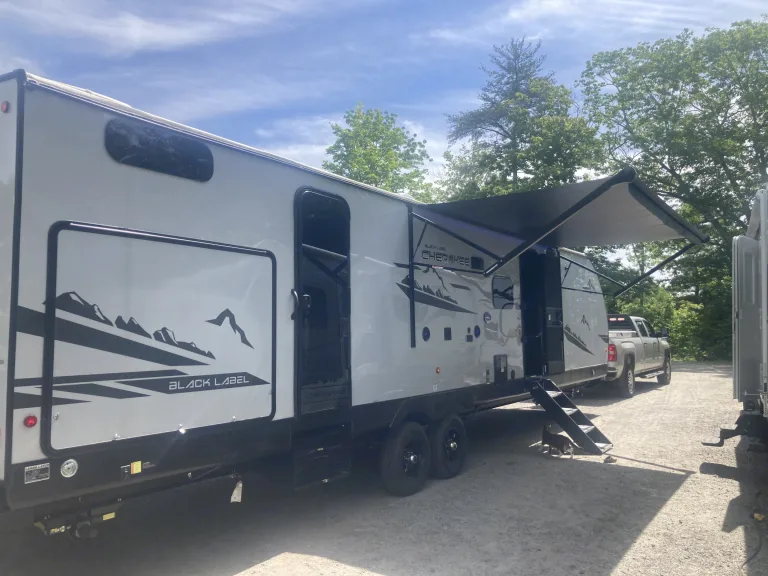 40ft camper, private master and bunk room, outdoor kitchen, fireplace, outdoor lighting. Three slide outs for plenty of living space. Two entries into the camper one directly into the full bathroom. What's includedLinens, camping chairs, kitchen accessories. Delivery upon request at Maine campgrounds. RecommendationsHave fun and enjoy camping! We love camping at Yogi bear and moose creek RV in Greenville. Other things to noteNo smoking inside the camper.