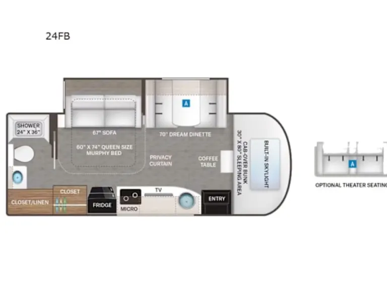 At 25 feet, this coach is compact enough to handle city streets and tighter campgrounds while still offering all the space and amenities you’ll want on the road.⸻Comfort & Features