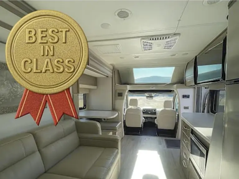 Built on the legendary Mercedes-Benz Sprinter diesel chassis, this motorhome averages 16–18 MPG—roughly double the mileage of most gas Class C RVs. That means you’ll go farther, spend less on fuel, and still enjoy the power and reliability Mercedes is known for.