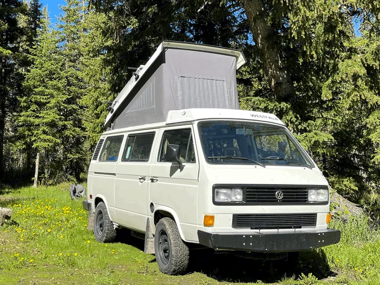 *Update* June/2022* Please check additional information/Recommendations below for more information.Looking for a unique and classic camping experience with modern amenities? Please consider our 1986 Volkswagen Vanagon Westfalia. We've done an exhaustive restoration on this van including new paint, updated and improved suspension, and mostly new mechanical parts.  Along with a new interior, we've installed a solar-powered auxiliary electrical system capable of charging all of your devices.  A good-sized fridge holds several days worth of food - no need to buy ice end up with soggy food!  An auxiliary heater provides warmth on those cold nights without having to run the van's motor. There are 2 beds total; one upper bunk, and one lower bed. Each bed can sleep 2 adults comfortably. Pop the top for more head room and to gain access to the upper bunk.  Prepare food and eat inside or outside with our included stove and complete kitchen gear. Everything one would need to have a complete camping experience is included.  Just come with your luggage! Camp kitchen, chairs, tables, and clean linens are all included. Stop off at the grocery store, fill the fridge, and you'll be set. This van has a Manual transmission. Can't drive a manual yet? Don't let that discourage you. It's easy to learn in this van.  Coordinate friendly lessons with us, or please arrive with the ability to drive a manual transmission. Although there is sleeping room for 4 adults, we recommend a maximum of 2 for a less cramped cabin. We are happy to deliver to Bozeman Airport, but we are about 90-miles away. Delta Airlines does fly into West Yellowstone where this van is located (no delivery or pickup fee).  We can deliver to the BZN airport and pick up the van from there, however this does cost us time and money, so we charge $1 per mile ($90 each way) for delivery and pick-up.  What's includedEverything one would need to have a complete camping experience is included. Need something else? Just ask and we will do our best to accommodate you.  Here is a list: