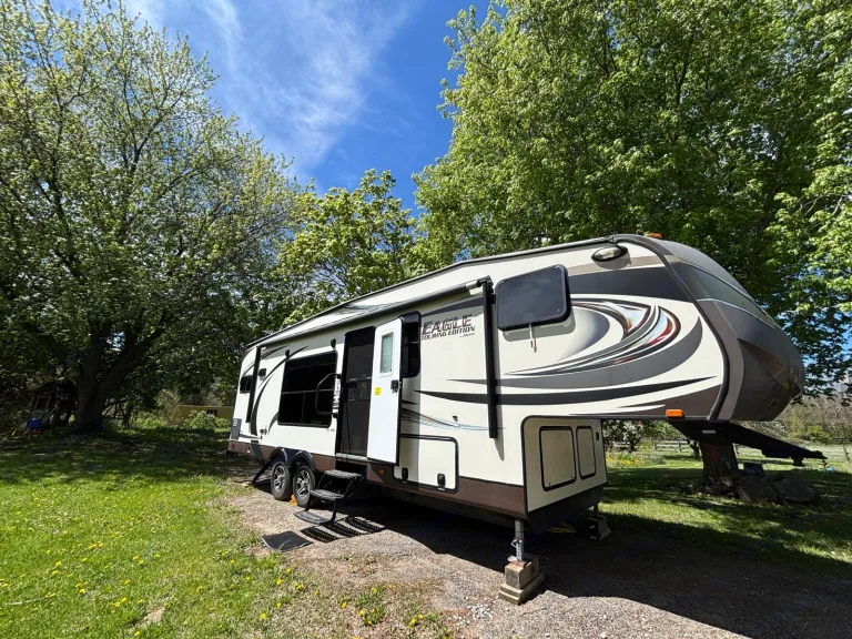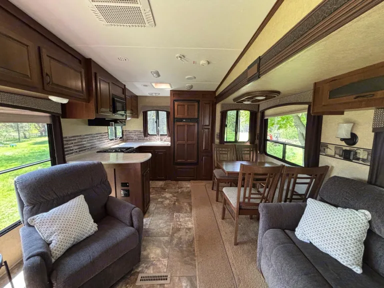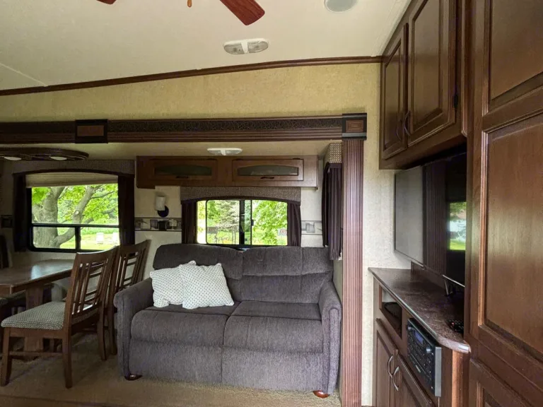 Welcome to our cozy and spacious 2014 Jayco Fifth Wheel! This trailer is perfect for travelers who want both comfort and freedom. It comfortably sleeps up to 4 people with a private queen-sized bedroom and a convertible sofa in the open-concept living area. Inside, you’ll find a fully equipped kitchen, generous storage, and a bright, airy layout—perfect for relaxing after a day outdoors.Whether you're sipping your morning coffee in the sun-filled living space or cooking up dinner after a hike, this fifth wheel gives you the comfort of home while you explore new places.Perfect For