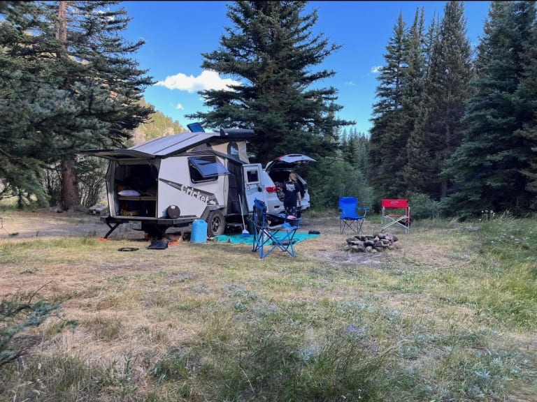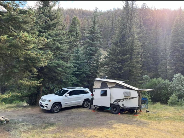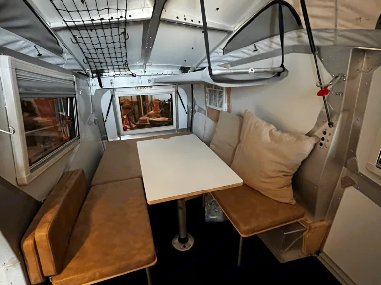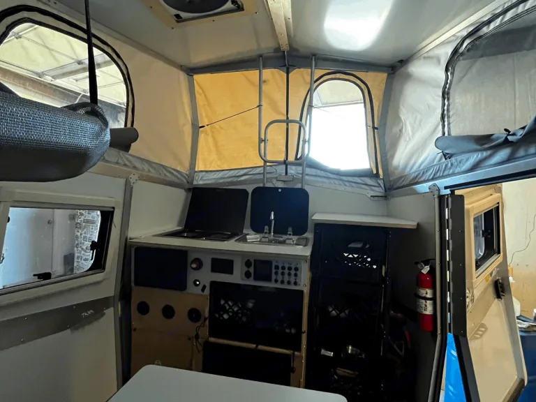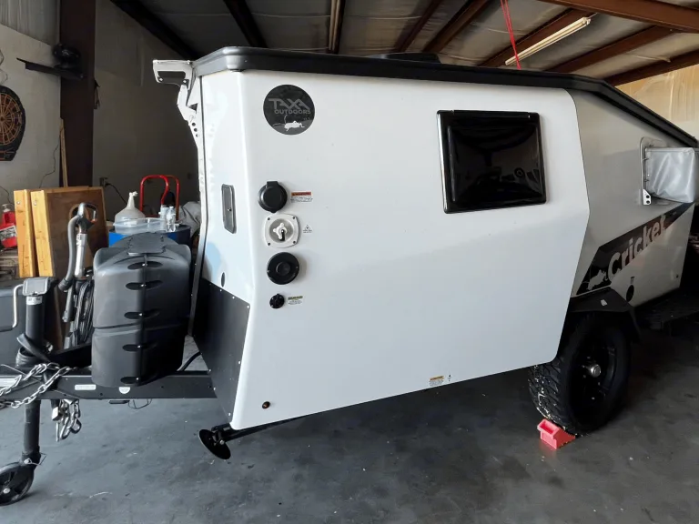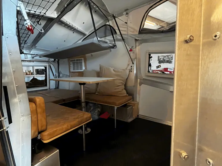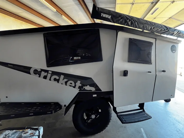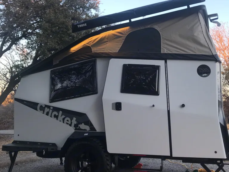 In a footprint less than 15’ × 7’, Cricket can comfortably fit a family of three (2 adults, 1 child) with its pop-up roof and one lofted berth. The interior is modular and features a cafe table, kitchen, all the storage you could need, and easy cross ventilation so you can feel the breeze through windows and doors, no matter the direction. Cricket enables adventurers to experience their destination like no other camper, and is durable enough to handle the terrain covered to get there.