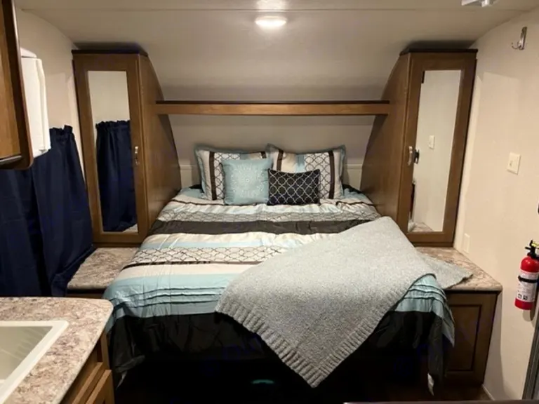 All you need to make memories in this updated cozy camper. Queen bed sleeps up to two adults, dinette folds down for extra bed which sleeps one adult or two children, sofa, tv, stereo system with Bluetooth capabilities and outdoor speakers, stovetop, large kitchen sink, and spacious bathroom with shower. Perfect size camper for a single individual, couple, or family with young children. Sleeps 3-4 comfortably. Lightweight camper can be pulled with truck or SUV. Easy setup with electric jacks. Delivery available for additional fee. What's includedDinnerware for 4, pots and pans, mixing bowls, coffee maker, towels, bedding, 2 folding bag chairs, a folding outdoor table, outdoor mat, picnic table coverings, grill set and more included. Large zero gravity chairs available for an additional fee.Hand soap, body wash, shampoo, dish soap, 1 roll of paper towels, paper plates, disinfectant cleaning spray, 4 rolls of toilet paper, and 2 garbage bags also included for you.RecommendationsFort Yargo State Park is just 10 miles away where you can enjoy fishing in the lake, hiking or biking the trails, and just relaxing with nature while still having conveniences within a couple of miles. We are also located mid-way between Lake Lanier, Lake Oconee or Lake Hartwell. Lots of great State Parks or campgrounds in close proximity.