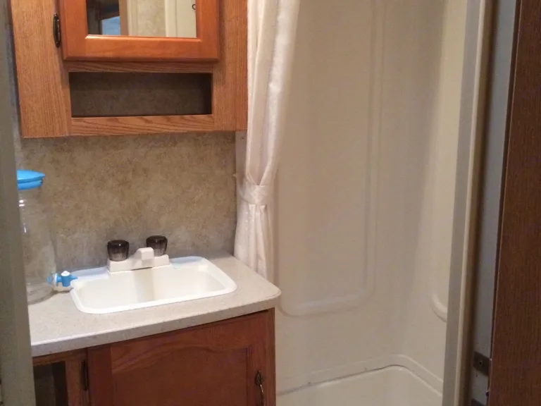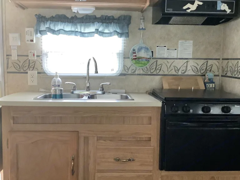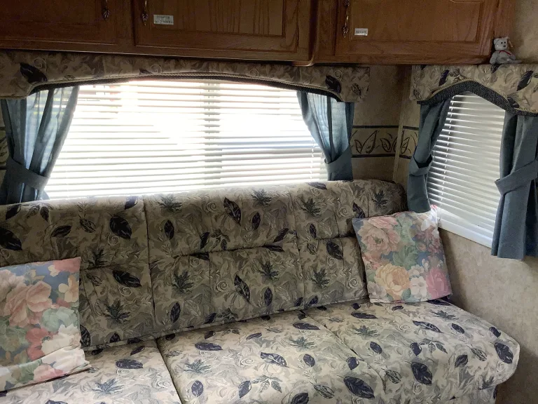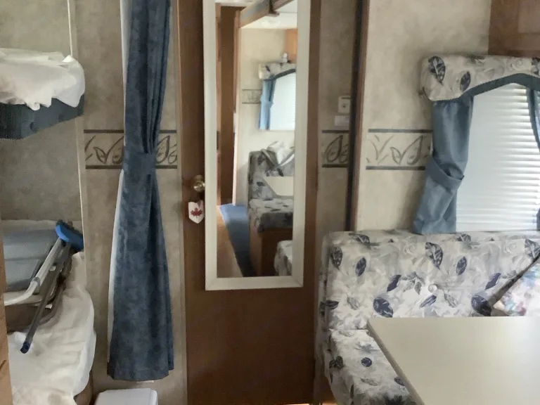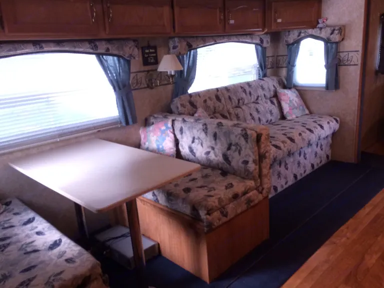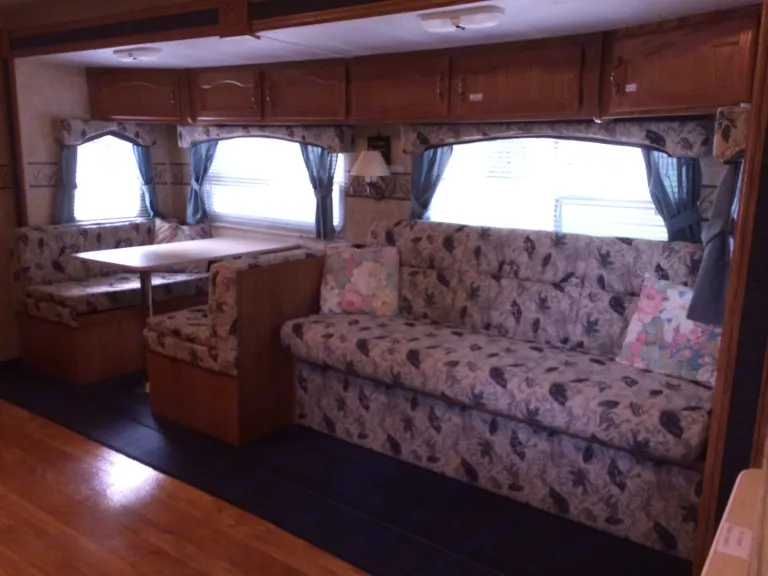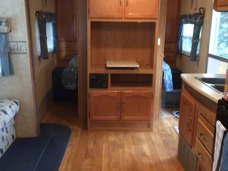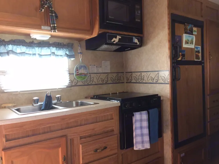 A great unit for hitting the campground! This unit has never been smoked in and is in excellent condition.It is pre-packed with all the necessities for your trip. so no need to bring anything but your own food, snacks, and sleeping linens/pillows, and bath & kitchen towels.We recommend a maximum of 5 for a comfortable experience. The front master bedroom has a queen size bed (sleeps 2), a fold out couch (sleeps 1) and rear bunk beds (sleeps 2). There is a handy step ladder for the upper bunk. The slide-out extends the floor space to nearly double when extended. A hand rail and three stairs are at the entrance to the trailer, and they work great.The bathroom includes a mini tub with shower head. This is great for a quick rinse-off, washing feet or small children. Keep in mind that unless you are in a full-service camping spot, you only have as much water as what was put in the holding tank, and a small amount of hot water from that tank. So we recommend you take advantage of the showers offered in most camp grounds for full bathing and hair washing.You will require a vehicle capable of towing at least 8,000 lbs weight (Gvwr 7,680 lbs) with an electric brake control system. For example, the minimum of the equivalent of a half ton truck. An equalizer hitch and sway bar will be provided for your use. What's includedCutlery, plates, mugs, cooking utensils, cutting board & drain board are provided. Also, a small electric heater and cooling fan. There is the option of a TV that plays DVDs. We provide the RV-rated toilet paper (you can't use anything thicker than that). There is a kettle, coffee maker and microwave. The fridge is both electric and/or propane powered.Other things to noteWe want you to have a marvellous time, but not as the "party trailer" please. We have kept this trailer in 'like new' condition by treating it gently and with care, and trust that you will too. In order to be able to pull something the size of a house down the highway, it is made of light-weight materials, making it vulnerable to rough handling. Outdoorsy holds your $750 damage deposit which will be used if there is unnecessary damage upon return. Thank you for your care and consideration.