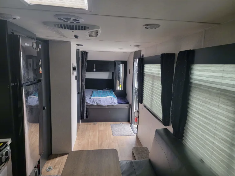 21 foot Grey Wolf black label toy hauler. 2022 great condition and sleeps 3. Toy ramp doubles as a porch. Small folding propane grill included with rental. This toy hauler is perfect for motorcycles and other small REC vehicles. What's included3 camping chairs, fresh linens, bath towels, folding propane grill, rv safe toilet paper and toiletries. TV. Basic kitchen utensils.RecommendationsKey west, Beverly Beach, Silver Springs, St. Augustine,Destin. Other things to noteDo not flush ANYTHING down toilet other than RV safe toilet paper. Do NOT flush feminine products. Do not leave awning open overnight, in windy conditions or when rv is unattended. Please be respectful and leave the rv in the same condition as you found it. Dispose of any food in refrigerator, freezer and pantry before returning rv. Do not drive trailer with TV on mount please return it to the box. You MUST be sure to use surge protector when plugging into electric source.