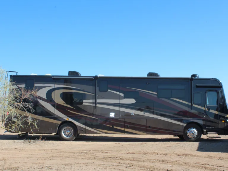 Folding chairs, small side tables, patio rug, pop-up trash container (to keep your campsite clean)RecommendationsPlease note that due to the slide outs it's important that the coach be perfectly level to avoid breaking the mechanisms that control the slides therefore it's recommended that this coach be used in designated campgrounds or on flat terrain.
