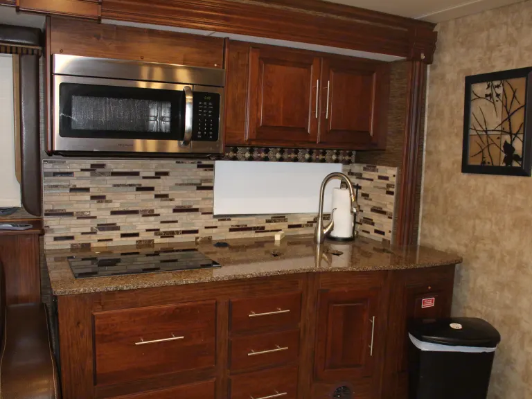Gorgeous coach with all of the comforts of home! This rig has it all... king size sleep number bed in the master suite, motorized drop down salon bunk with room for 2, convertible full size booth dinette and queen size pull out sofa to comfortably sleep the whole family and 2 seperate bathrooms (a must have for larger groups) all linens included. 4 televisions including one overhead, one motorized pop-up in the living area with surround sound, one in the master suite and another outside under the 17ft awning plus dozens of dvd's to choose from.