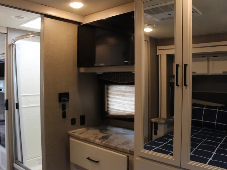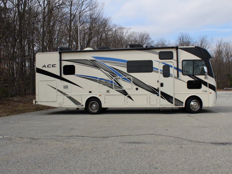 Welcome! This 2021 Thor Motor Coach A.C.E is a Medium sized Class-A Motorhome that's very easy to drive with backup and side camera views. Plenty of space for a family of six or less and lots of storage space inside and out. Separate sleeping space in the back with a Queen Sized-Bed and privacy door. Also have a Queen-like loft-style bed in the front cabin area ensuring comfort and relaxation! Two other beds include the dinette which converts into a bed, as well as the sofa. There are 3 TVs as well as a Blu-ray disc player.