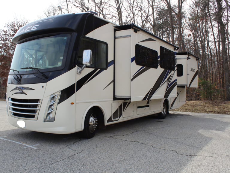 Must use 50amp full hook (Sewer, electric & water hookup) this allows you to have use of all features on the RV. This motor home runs on regular gas. And as a heads up, the generator will not work with less than 1/4 tank of gas. We have automatic front and rear leveling jacks. When the time comes, we have a 16 ft. awning with cool lights for night time enjoyment. Fur babies (sorry, only dogs) are welcomed with a limit of one.What's includedbike rackRecommendationsWe've taken our ACE to Disney Campgrounds, to Canada, to several beach campgrounds.Other things to noteNo smoking allowed on the ACE. Only one dog is allowed.