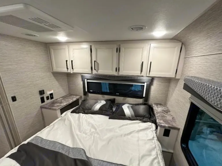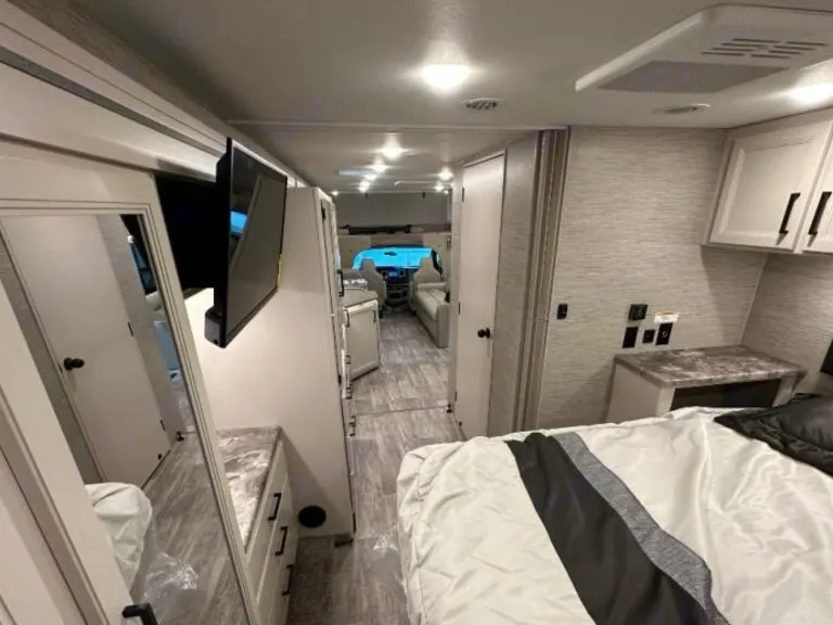 Our “Bobil” is a brand new 2023 Class C Thor Motorcoach 31W that has everything you need for a Great family vacation! Automatic leveling jacks and included leveling blocks make set up very simple. A full slide expands the coach into a roomy living area.This coach sleeps 7-8 with a Queen bed in the private back bedroom, pullout couch, a convertible dinette, and a full sized bed above the cab with privacy curtains and safety features. The beds all come with bedding and quilts.